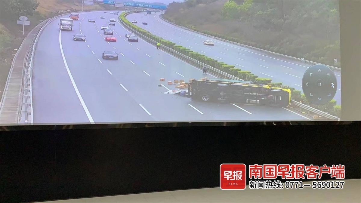 2月21日上午9时22分,一辆拖运车在G72泉南高速公路南宁往柳州方向1452KM(伶俐收费站附近)处发生侧翻,车上拖运的故障车辆与货物躺在路上,占据第一、第二行车道,幸无人员伤亡。据司机称,车辆行经积水路段时,因自己刹车操作不当导致车辆发生侧翻,拖运的故障车辆也因惯性问题侧躺在路面。