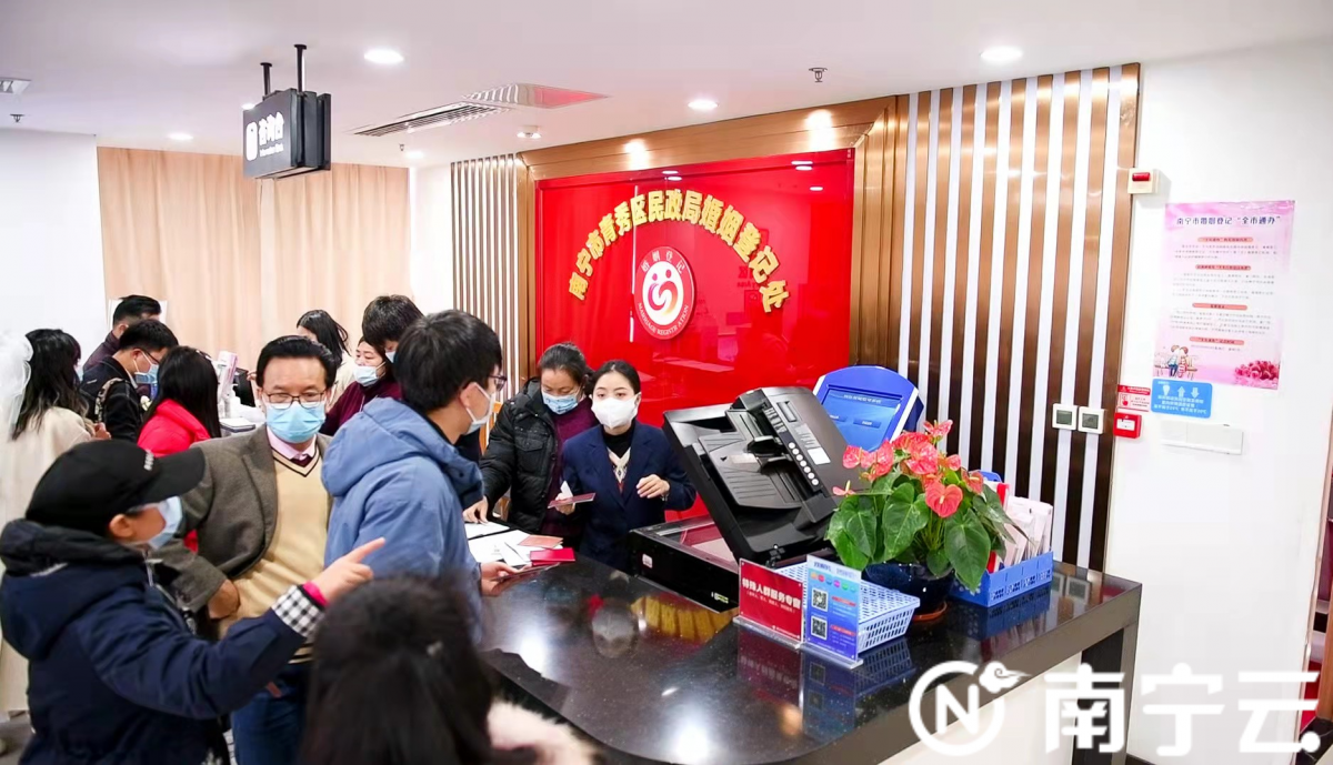 “因为在网上预约不到,想要来现场碰碰运气,没想到在现场也有号码牌发放。工作人员还特别贴心都在和我们说恭喜,还提醒我们领完证后可以在领证大厅内打卡拍照片,留个纪念。今天真是个好日子。”南宁市民李女士露出甜蜜的笑容,她表示工作人员便捷、热情的服务让她感到十分暖心。
