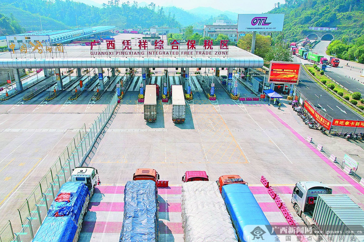 2月25日,满载出口货物的车辆有序开进广西凭祥综合保税区。记者 简文湘 通讯员 彭叶绿 摄