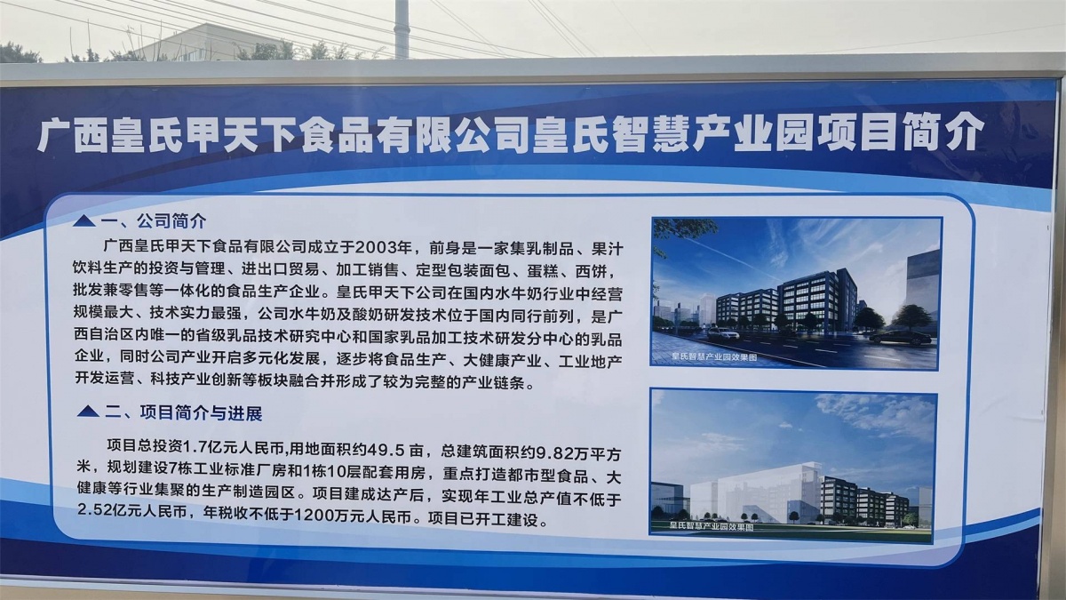 其中,皇氏智慧产业园项目总投资1.7亿元,项目占地面积约49.5亩,规划建设7栋7层厂房和1栋10层配套用房,总建筑面积约9.82万㎡,达产后预计可实现年工业总产值2.52亿元。