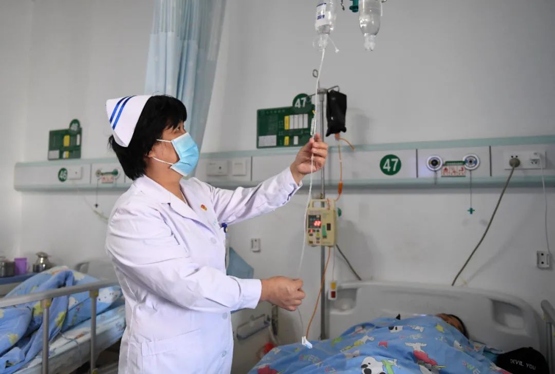 在广西南宁市第四人民医院,护士长杜丽群在给患者打点滴。新华社记者 陆波岸 摄