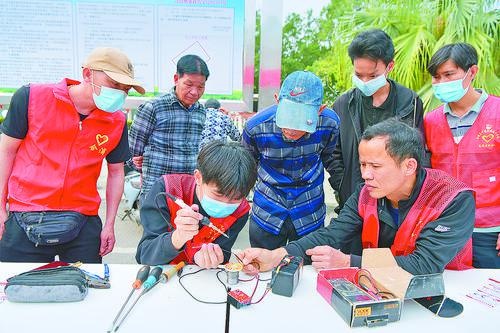 3月5日,合浦县举行学雷锋志愿服务活动,组织志愿者为群众提供食品安全知识宣传、维修小家电、预防网络诈骗宣传、医疗义诊等服务。林启波 摄