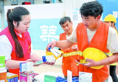 3月5日,中建三局二公司南宁分公司“向日葵”学雷锋志愿服务队走进广西体育高等专科学校相思湖校区开展“爱心集市”义卖活动。记者 周军 通讯员 陈开琼 摄