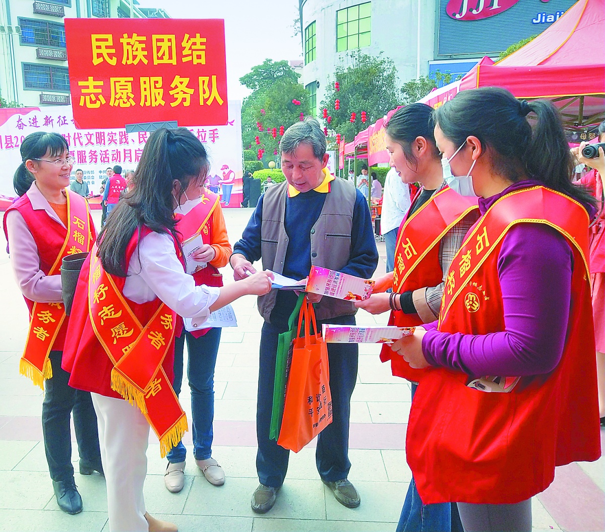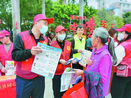3月6日,陆川县委宣传部、统战部、团委、妇联等部门组织开展学雷锋志愿服务活动。“石榴籽志愿者服务队”现场免费义诊、宣传民族团结创建知识和反电信诈骗、禁毒等。罗智虎 摄