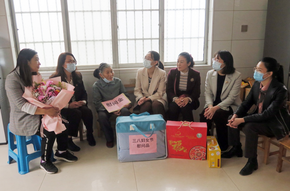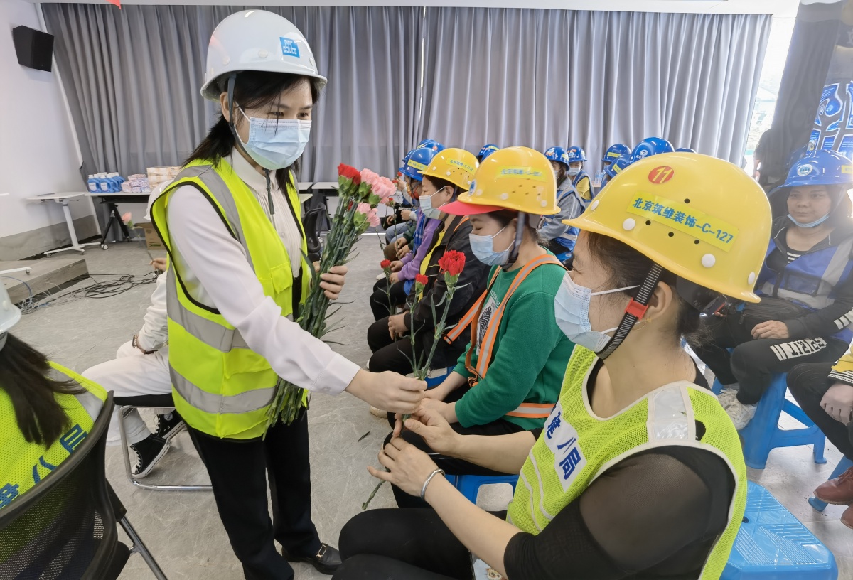 3月7日,中建八局妇联和法援中心在南宁青运村项目部开展慰问活动,为一线女工友解决在权益维护、家庭教育等方面遇到的困难。记者 何学俏 摄