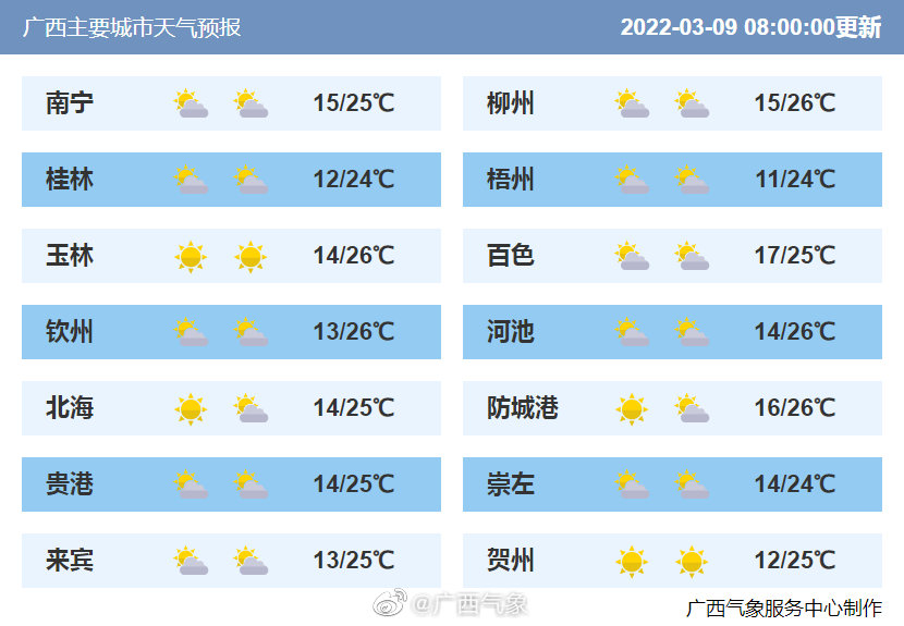 今日全区多云到阴 未来三天广西最高气温依旧维持在21~26℃