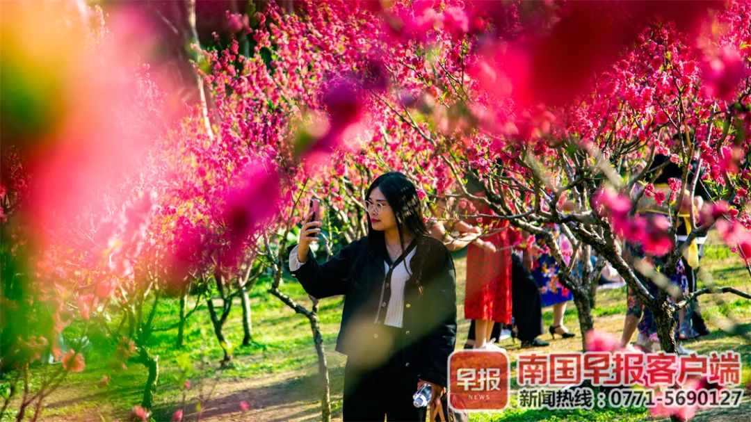 市民纷纷前来拍摄桃花大片