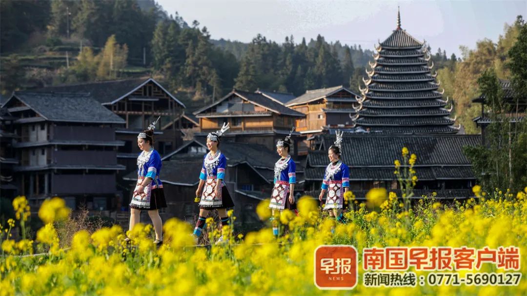 ▲3月8日,三江侗族自治县林溪镇程阳八寨景区油菜花盛开。