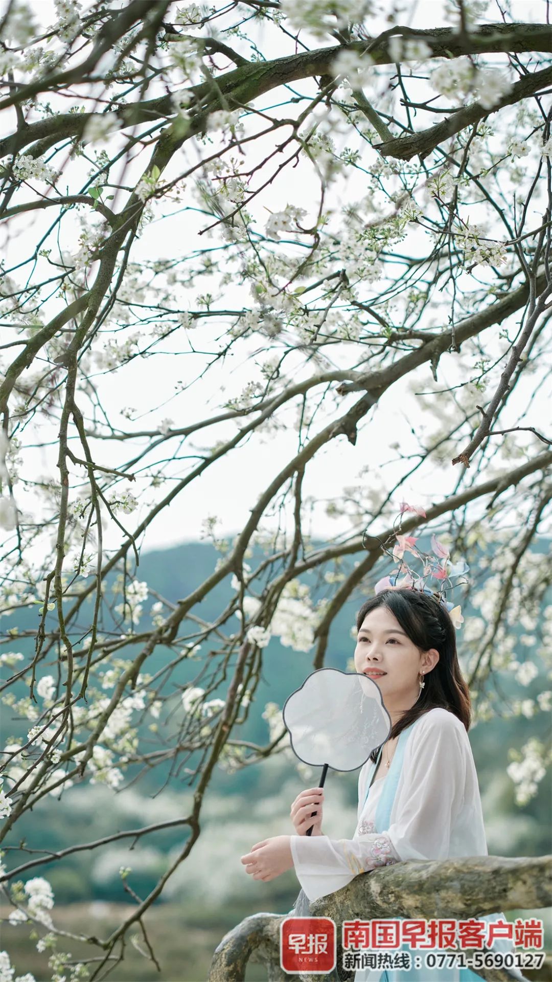 ▲3月7日,游客在碗窑梨花谷花树下留影。通讯员 黄开碧 赖昕 摄