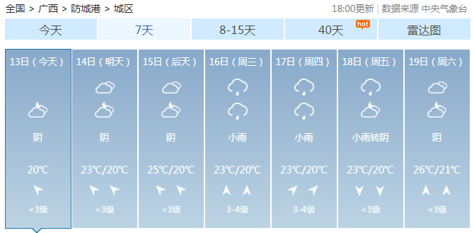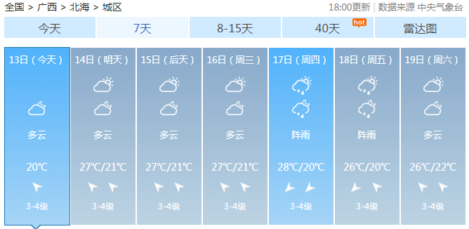 北部湾海面:三天内,多云到阴天,东到东南风4~5级。