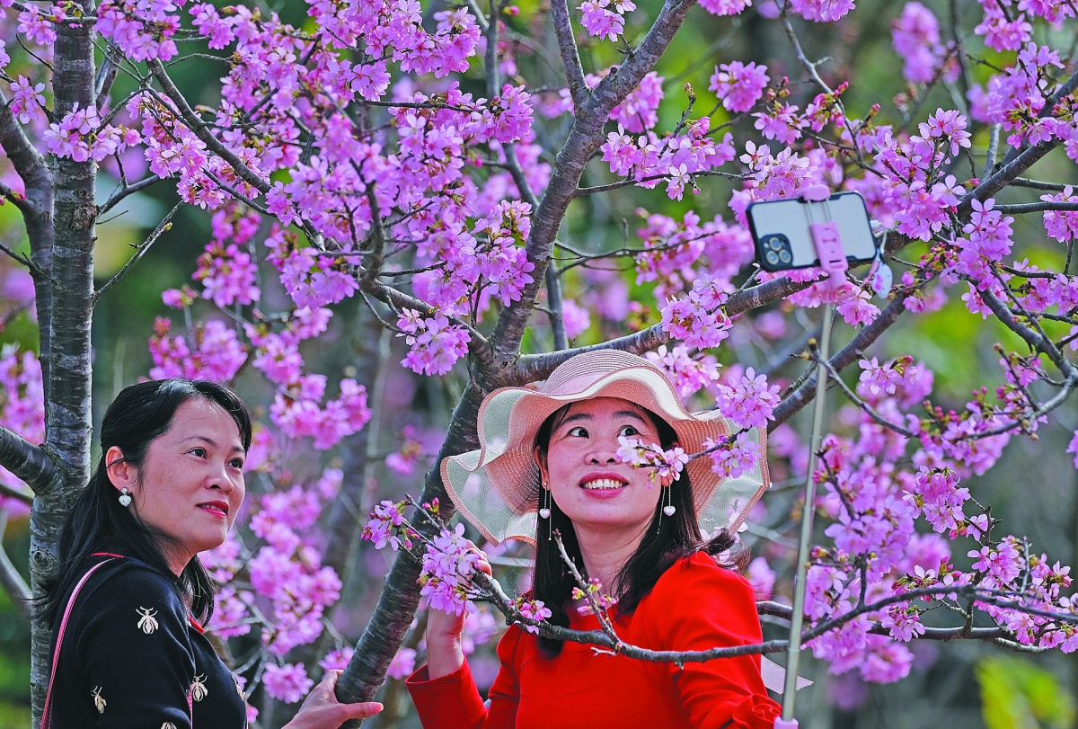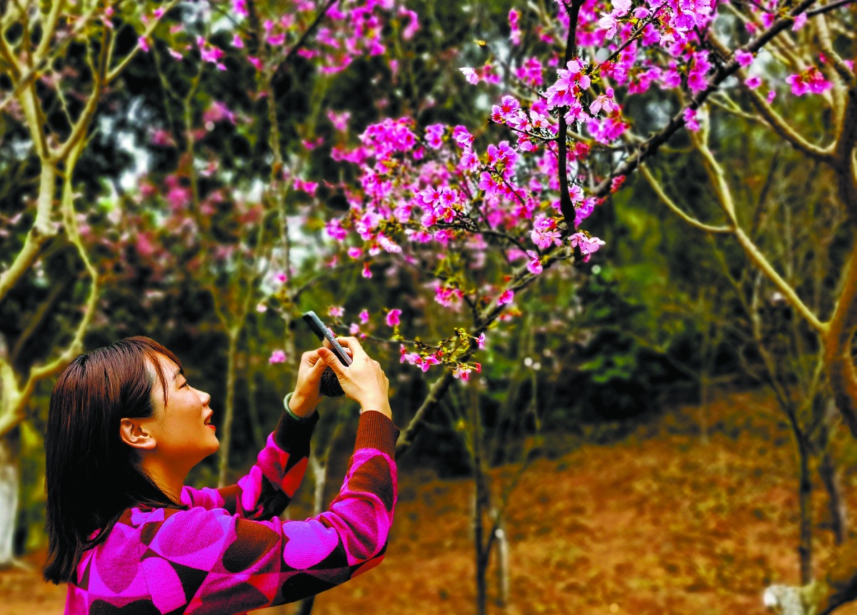 游客在防城港市仙人山公园里拍摄樱花。南国早报记者 钟小启 摄