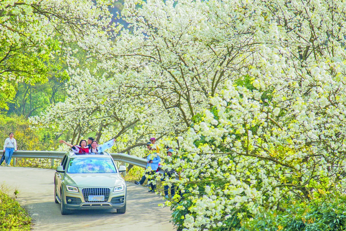 3月13日,周末,广西人的朋友圈俨然变成了花的世界——洁白的梨花,粉红的樱花、桃花,黄色的黄花风铃木、油菜花,红艳艳的木棉花、三角梅,紫色的紫云英……万紫千红,目不暇接。八桂大地繁花似锦,公园里、田野里,人们相约而行,踏青赏花。