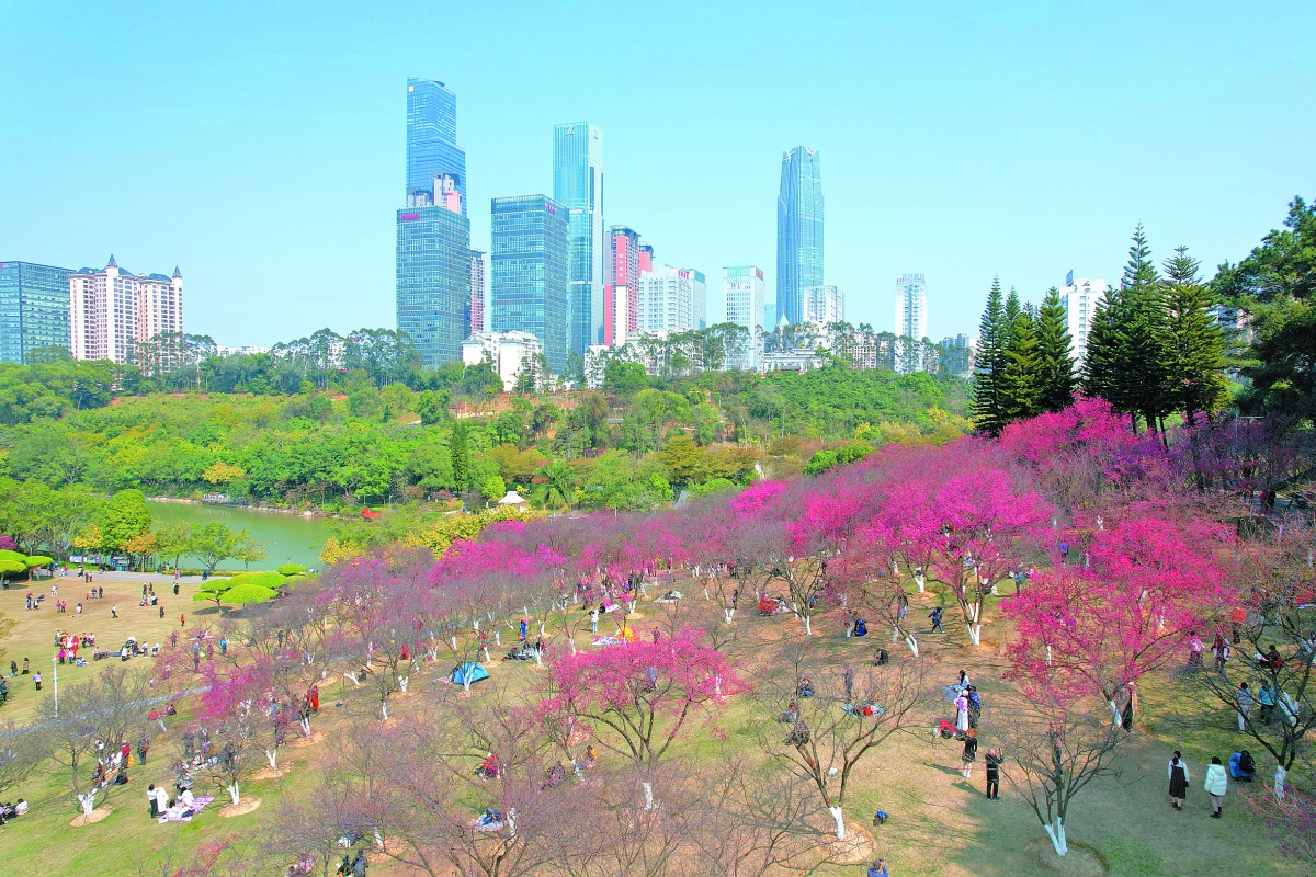 连日来,绿城南宁阳光明媚,处处萌发着春天的气息,在石门森林公园,竞相绽放的樱花吸引了许多市民前来观赏。记者 徐天保 摄