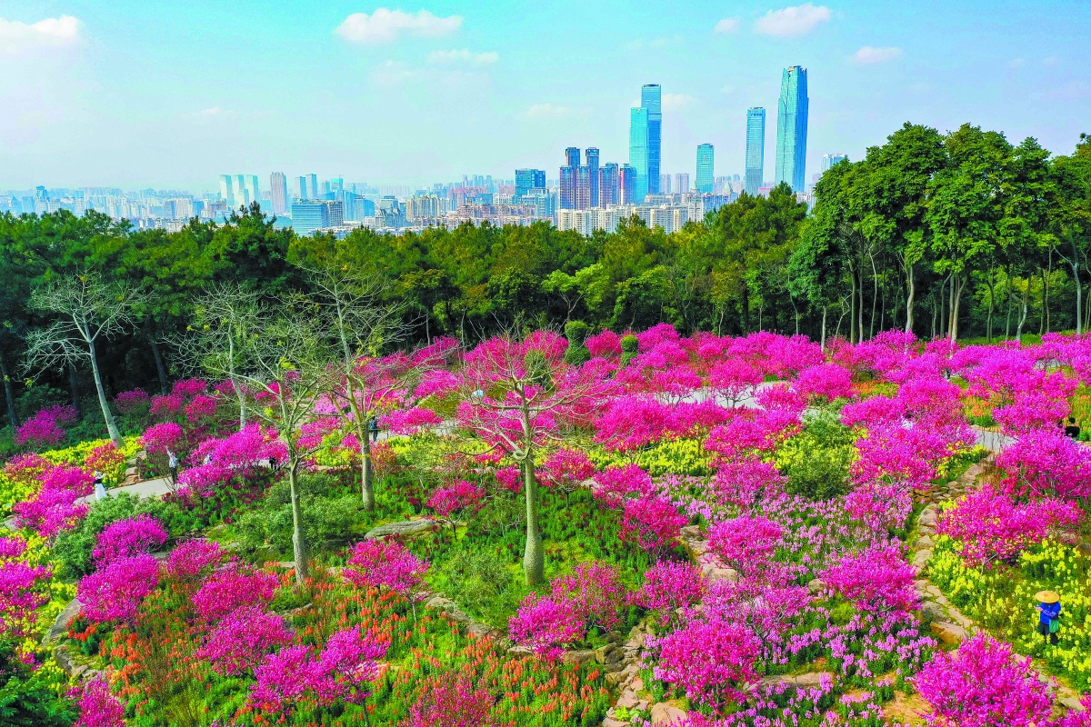 南宁市青秀山风景区内,12万多株桃树争相怒放,灿若红云。