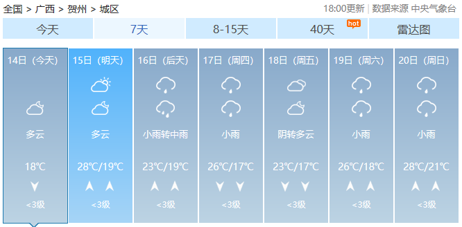 将从多云转为小雨+中雨到大雨 局部暴雨