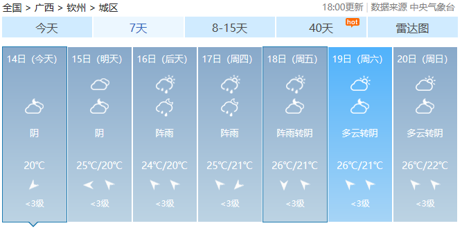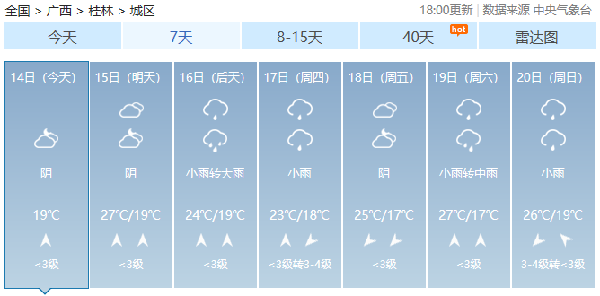 广西将开启降雨模式 局部暴雨、雷暴大风将至