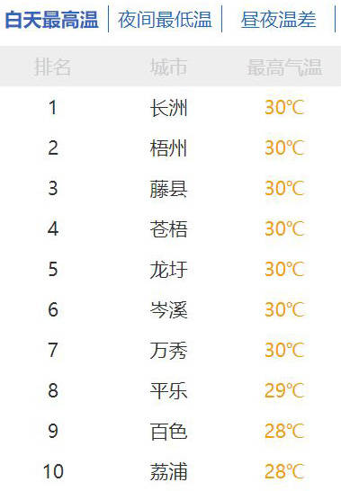 ▲多地最高气温达30℃。广西天气网截图