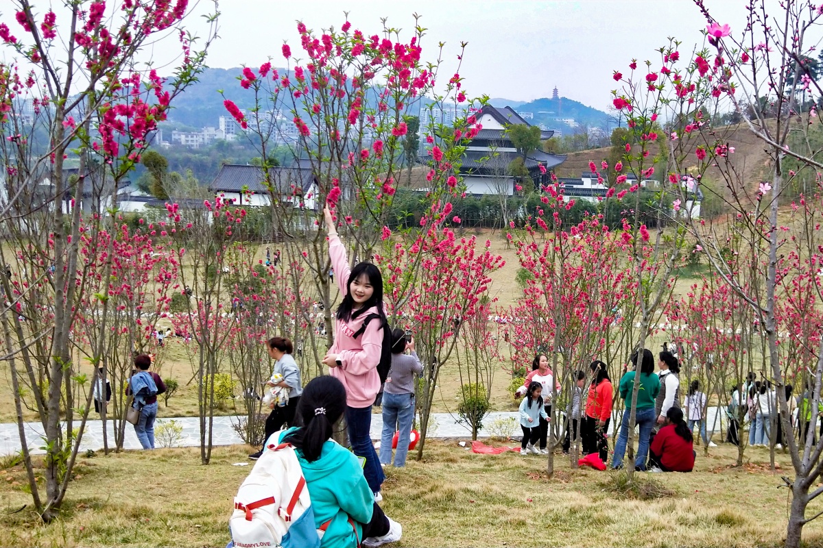 近段时间以来,位于桂林全州县城北新区湘江河畔的观赏桃花迎春盛开,鲜艳的桃花如彩霞般映红了湘江两岸,把城北新区装点得更加美丽,吸引了众多的市民们前来休闲打卡留影。近年来,全州城北新区各项建设发展迅速,优美的绿化环境是其亮眼的一笔。通讯员 唐广东 摄