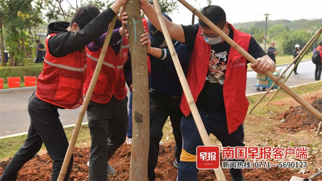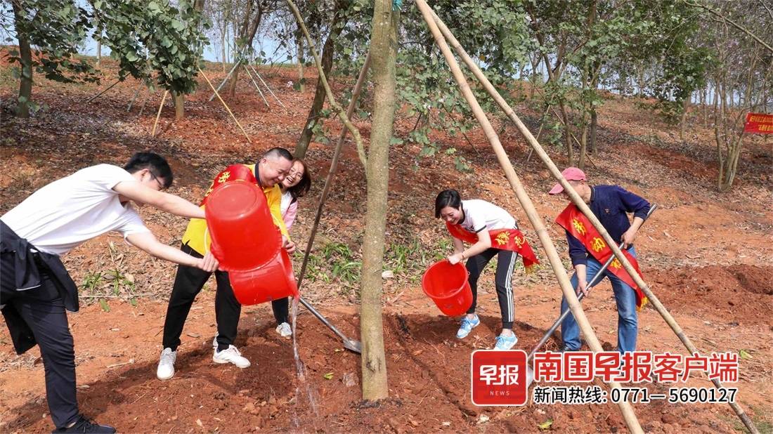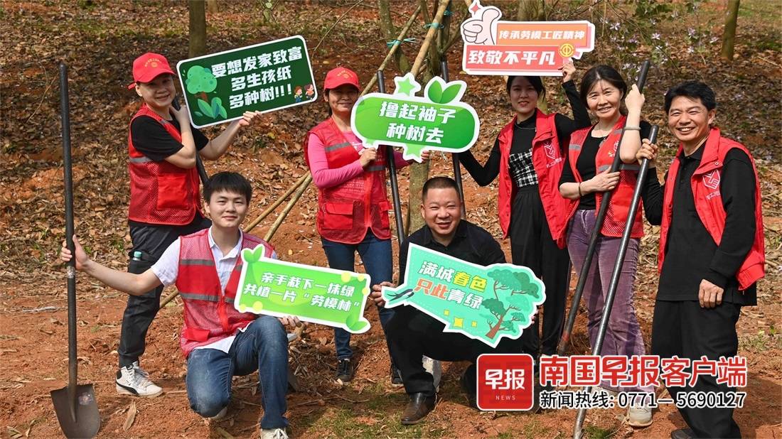 3月17日,南宁市总工会在青秀山风景区开展“志愿者 最闪耀”全市劳动模范、职工志愿者义务植树活动。现场约有30名劳模工匠,以及职工志愿者和大学生代表共计90人为景区种下绿树,形成一片劳模林,动员广大劳动者们学习雷锋志愿服务精神。
