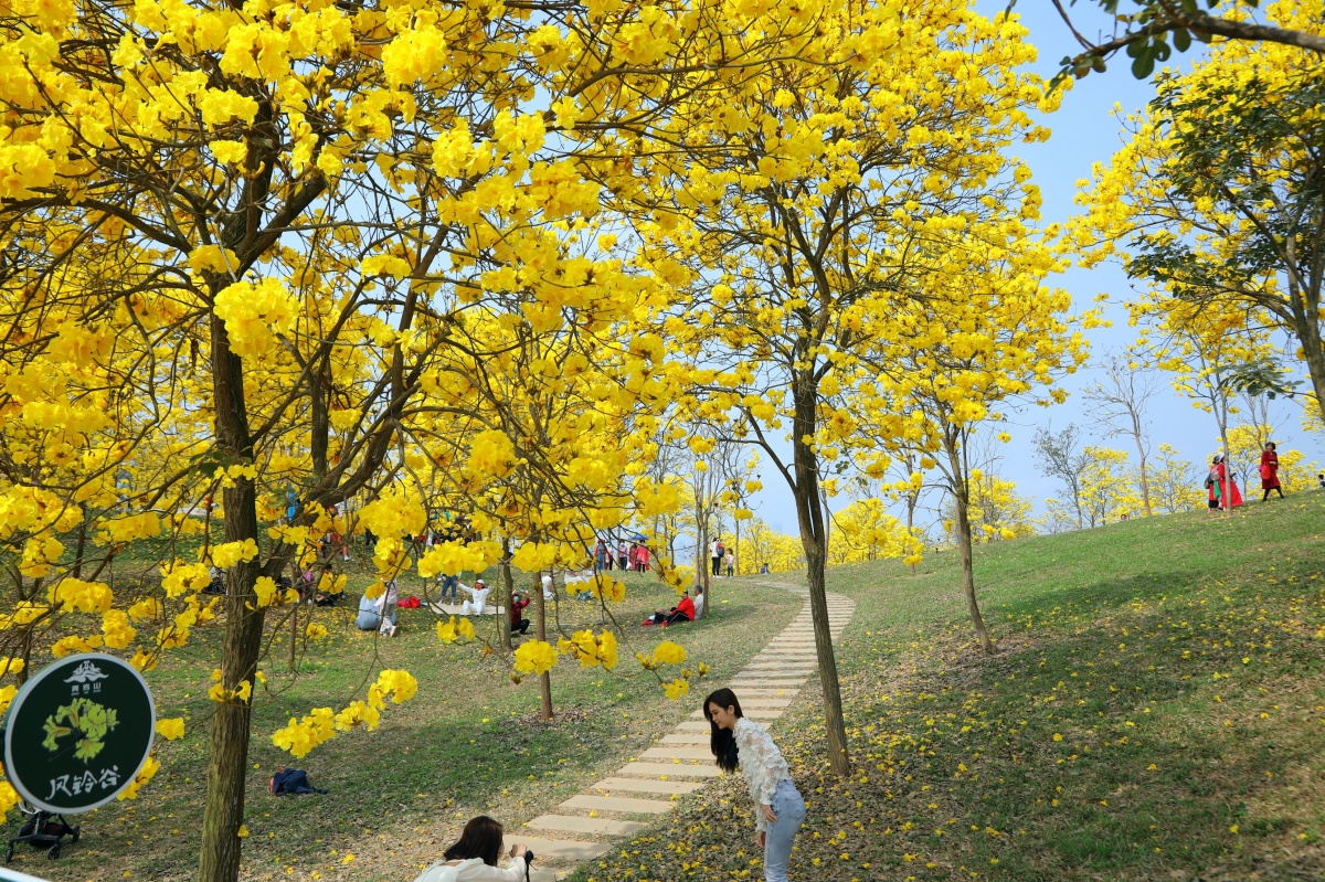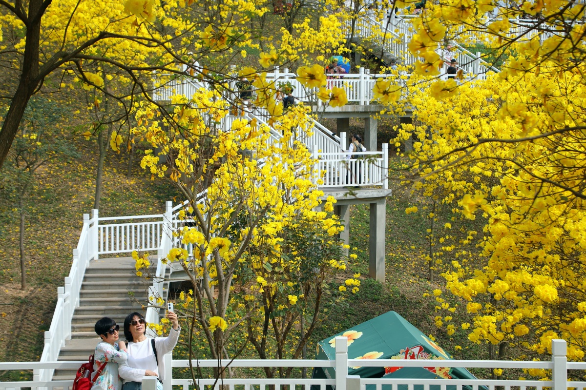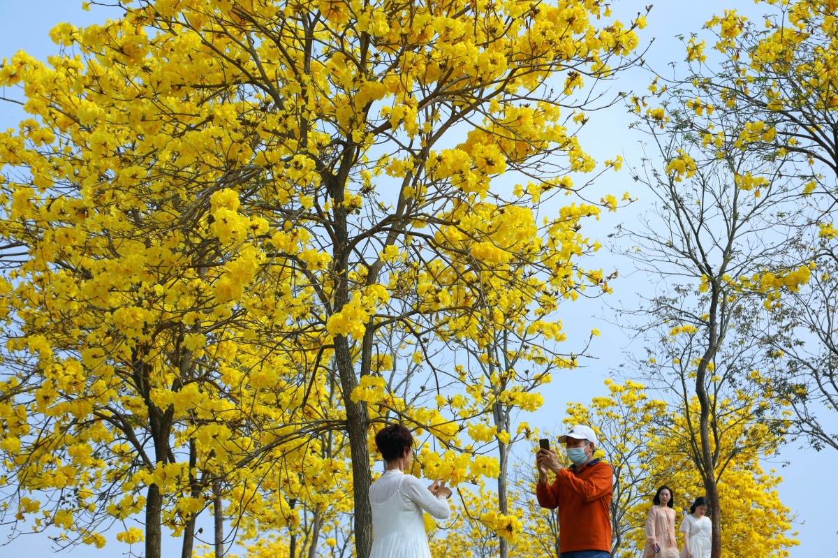 连日来,南宁市青秀山风景区的黄花风铃木进入盛花期,金黄色的花朵,夺人眼球,吸引众多市民游客前来踏青赏花拍照。通讯员 何正君 摄