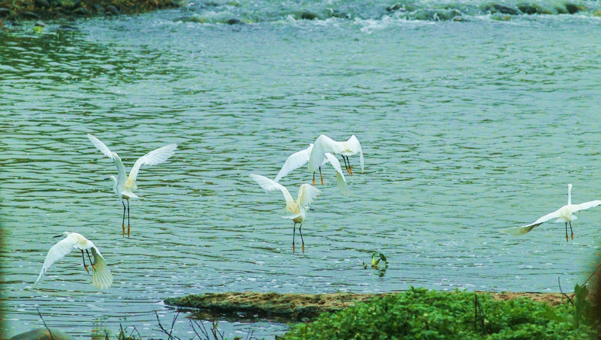 3月17日,蒙山县蒙山镇回龙村上空百多只白鹭时而在高空展翅飞翔,时而在河边戏水揽食。蒙山县实践乡村振兴战略措施,不但要金山银山,更要绿水青山,山青水秀地干净,造就良好自然环境,白鹭候鸟冬去春又回来,形成一道亮丽风景线。通讯员 江永录 蒙绘朝 摄