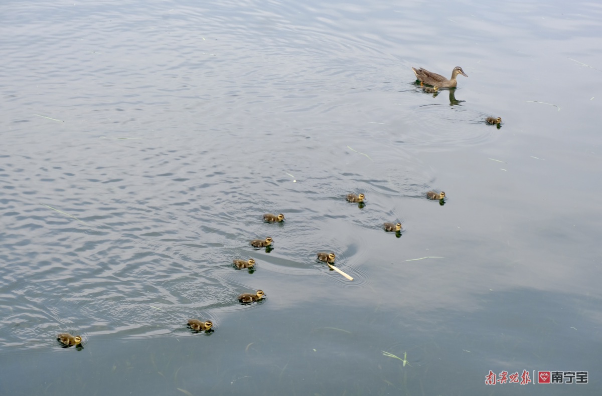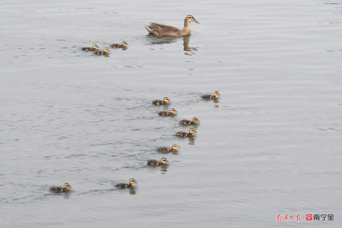 春日氛围感拉满!南宁南湖公园的野鸭生鸭宝宝了