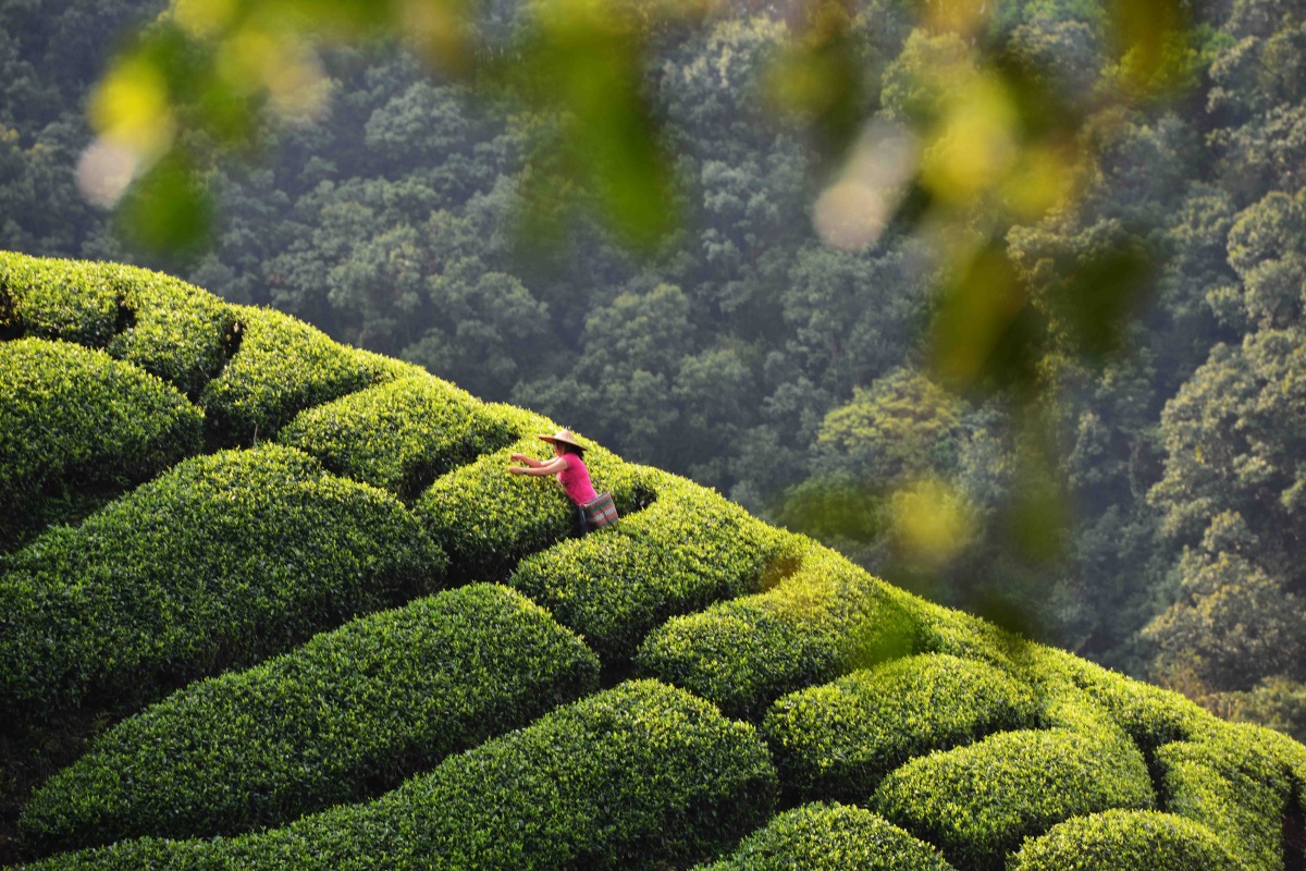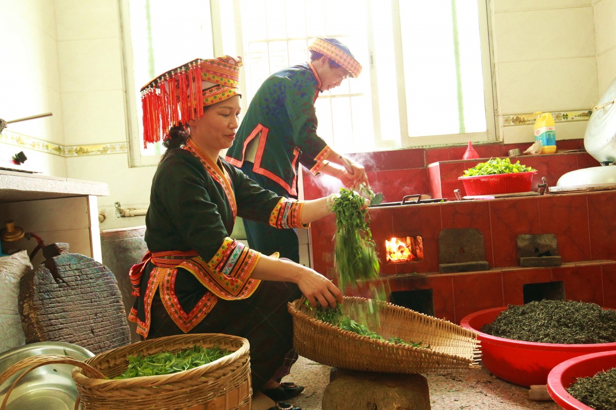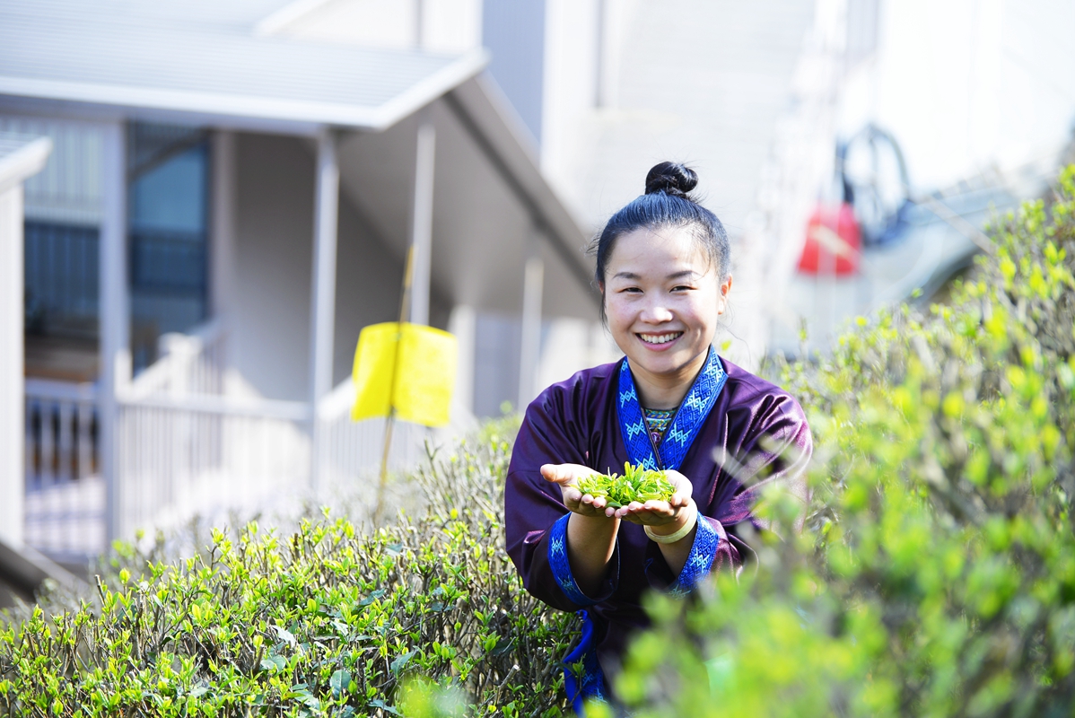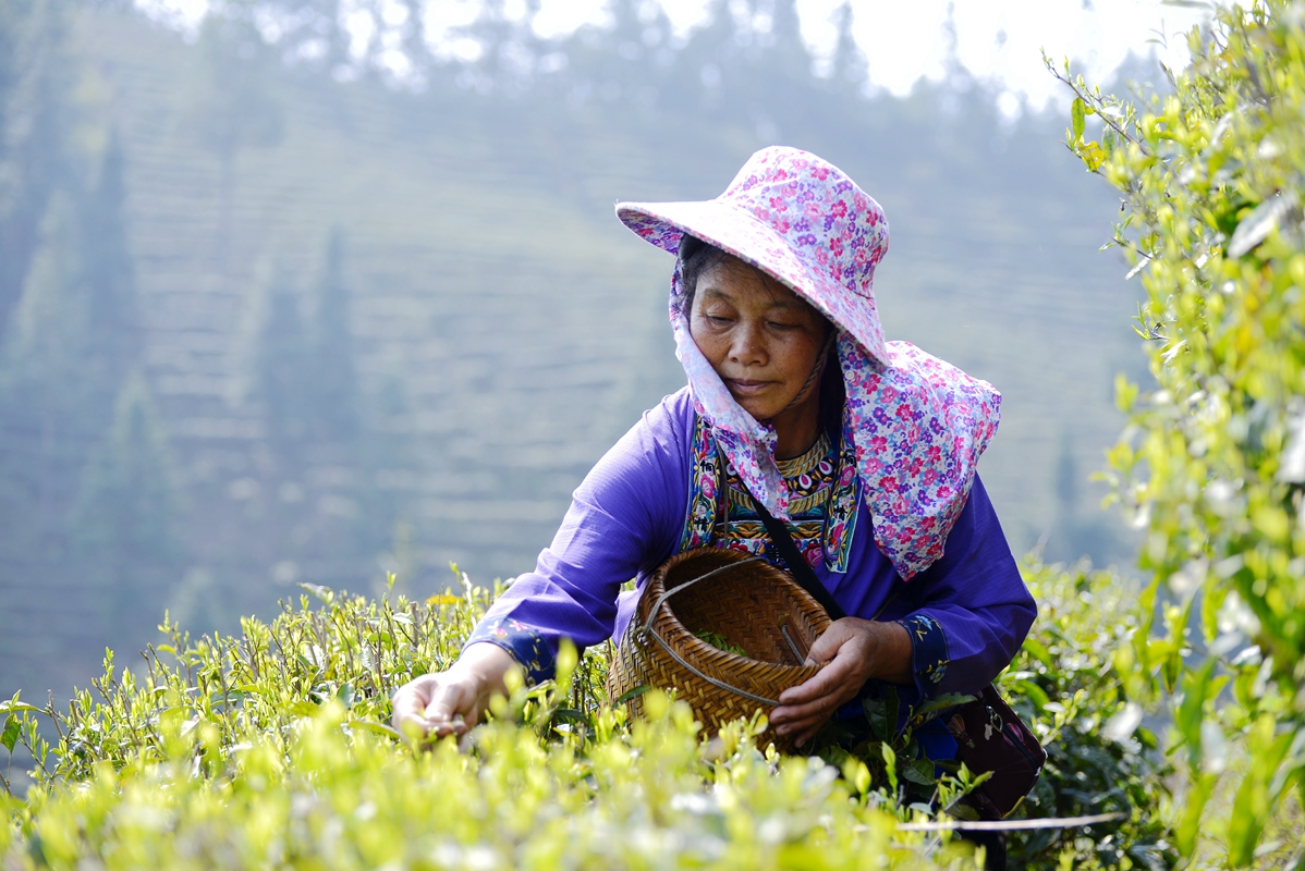 3月20日,春分时节天气回暖,在融水苗族自治县红水乡芝东村水源高山茶园一片忙碌,当地苗族妇女姑娘纷纷抢在清明节前采摘茶叶。通讯员 兰堃 摄