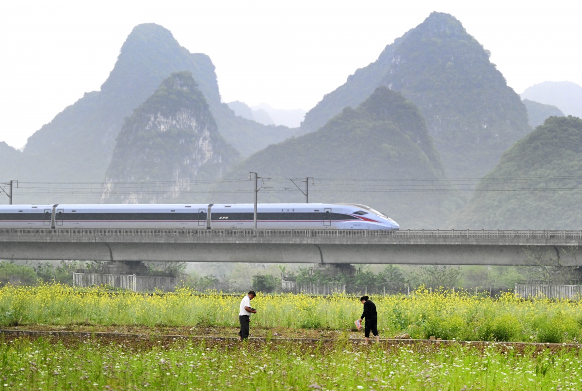 3月20日,融安县长安镇竹子村农民在田间劳作。当日是农历二十四节气春分,桂北大地的农民紧抓农时开展春耕生产、春管作业,田间地头呈现一派繁忙的景象。通讯员 韦荣军 摄