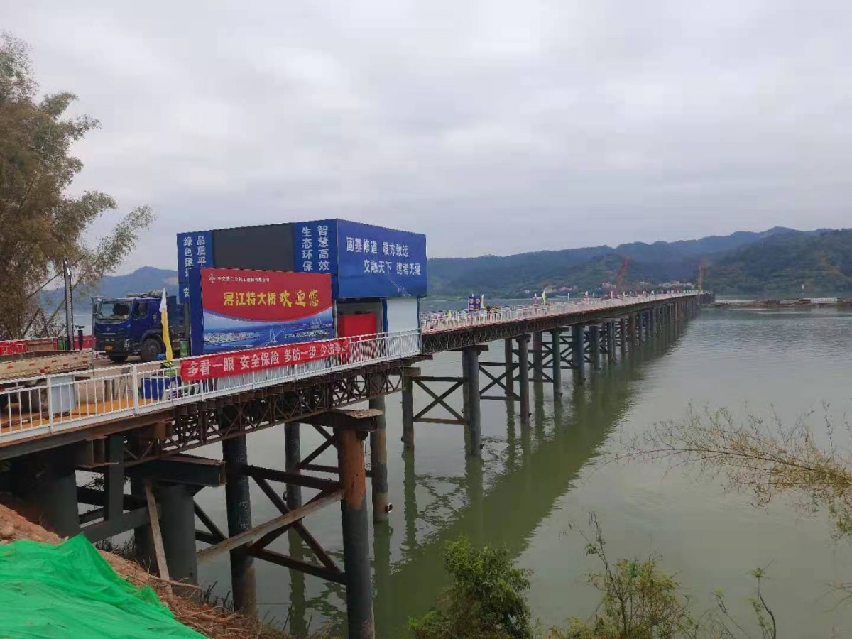 3月20日,投资超10亿元的平(南)岑(溪)高速公路藤州浔江大桥正在紧锣密鼓地施工,栈桥已经贯通。据悉,平岑高速公路路线总长75.11公里,其中藤县境内48.90公里,岑溪市境内26.27公里,项目采用双向四车道高速公路标准,计划总投资约133.36亿元,力争2024年底全面建成通车。通讯员 李伟明 摄