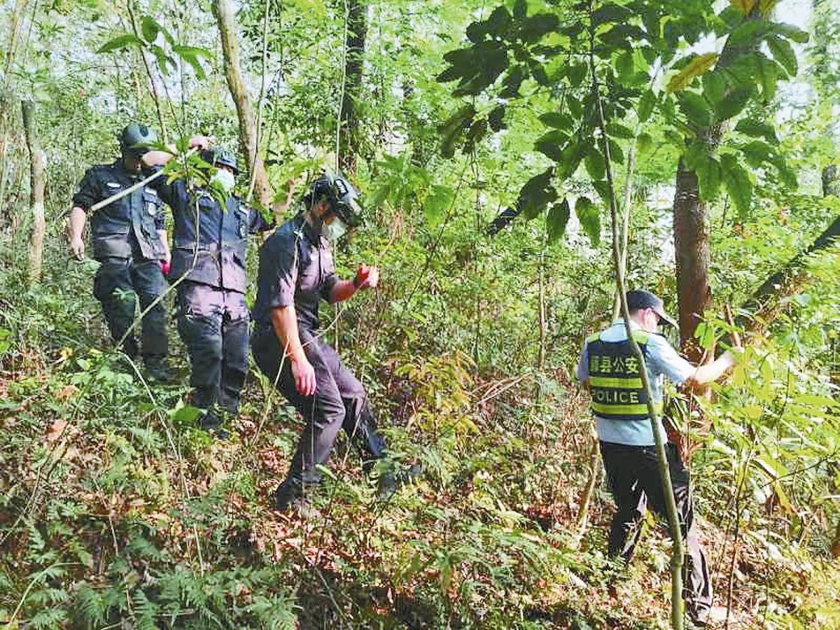 3月21日,藤县公安局民警在坠机现场周边搜救。