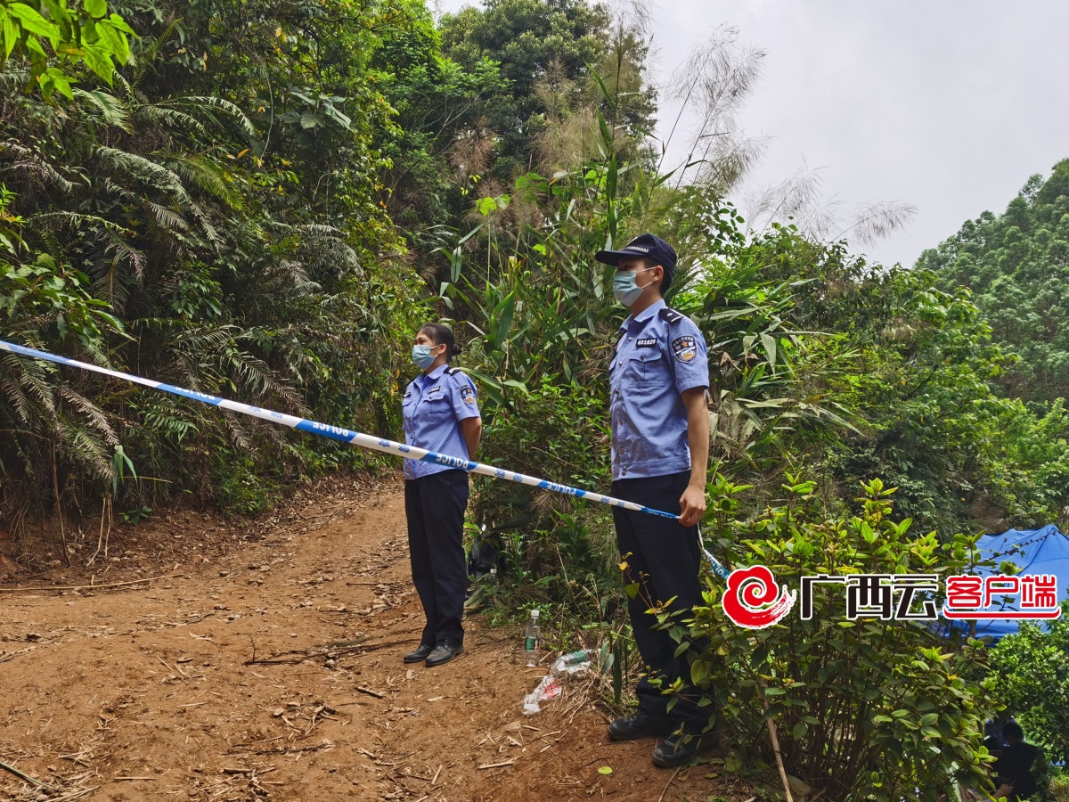 在救援现场,藤县公安民警与消防等救援力量密切配合,及时扑灭飞机坠毁引发的山火,迅速开展搜救、现场封控等工作。救援人员三人一组,以飞机坠毁点为中心,向四周扩散,进行地毯式搜救。