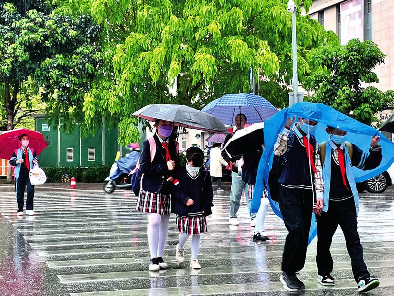 昨日南宁降雨降温“一夜入冬”,学生雨中行走。记者 宋延康 摄