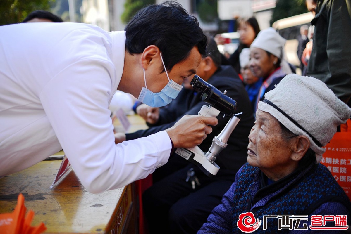 柳州市柳铁中心医院联合融水苗族自治县人民医院、白云乡卫生院,到该县白云乡保江村开展医联体义诊活动,免费为村民提供医疗服务,并向各族群众教授科学防疫和安全用药常识。兰堃 摄