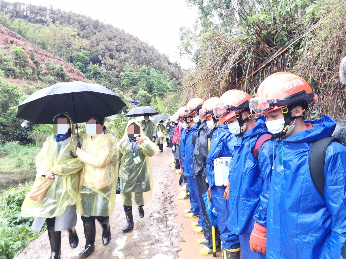 泪目!消防救援人员向失联旅客家属行礼 广西日报 03-25 19:41 消防救援人员低头向家属致意。蔡飞 摄3月24日,在梧州市藤县莫埌村南侧山道,距事故地点400米,消防救援人员在挺进途中,遇到前往现场的航班乘客家属,他们肃立在道路一旁,低头向家属致意。 0人点赞