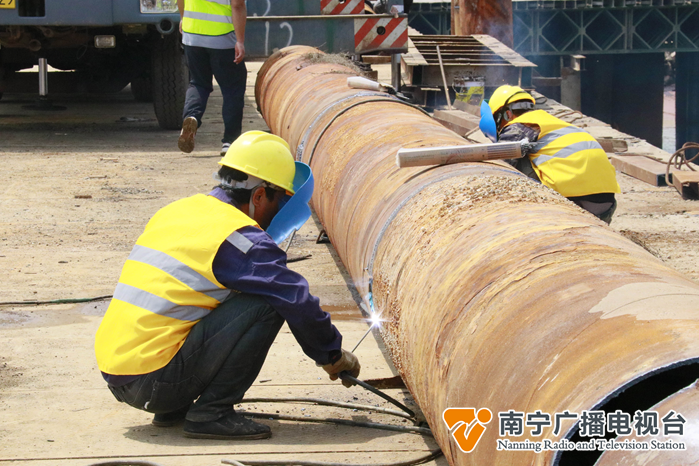 作为防东铁路全线重点控制性工程——西湾跨海特大桥全长7518米,自2021年12月18号开始海上栈桥搭设以来,为加快栈桥施工进度,中国铁路南宁局集团有限公司沿海铁路工程建设指挥部、广西沿海铁路公司组织施工单位中铁十六局持续克服新冠疫情影响,多次召开线上视频会议,及时调整施工方案,通过控制现场施工人数、交叉施工等方法,进一步优化了“人、机、料”资源配置。组织10台打桩机、196名施工作业人员、4个作业面同时昼夜不停施工,在有效施工天数仅65天内完成了西湾海域海上全长1456米钢栈桥搭设施工,为下部桥梁主体施工打下坚实的基础。