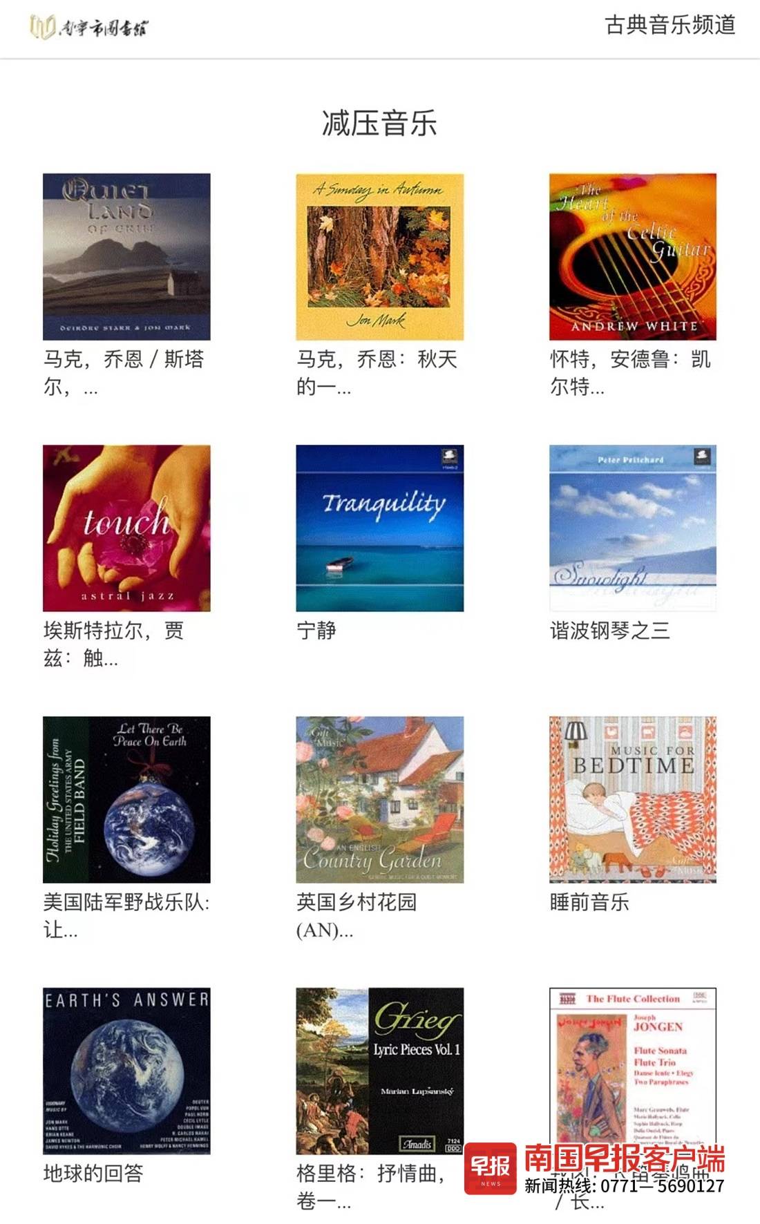 南宁市图书馆的线上数字资源中,就有着一个古典音乐数字图书馆频道。近日,该馆也特别推出“文化进万家·线上音乐汇”的活动,读者只需通过其官方微信公众号就能直达线上资源频道,聆听不同题材的古典音乐。