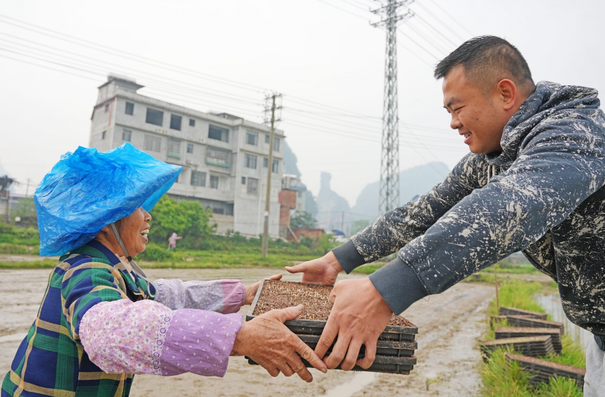 随着天气转暖,柳州市融水苗族自治县融水镇西廓村村民抢抓农时,加紧早稻育秧工作,为粮食丰收打下基础。通讯员 龙涛 摄