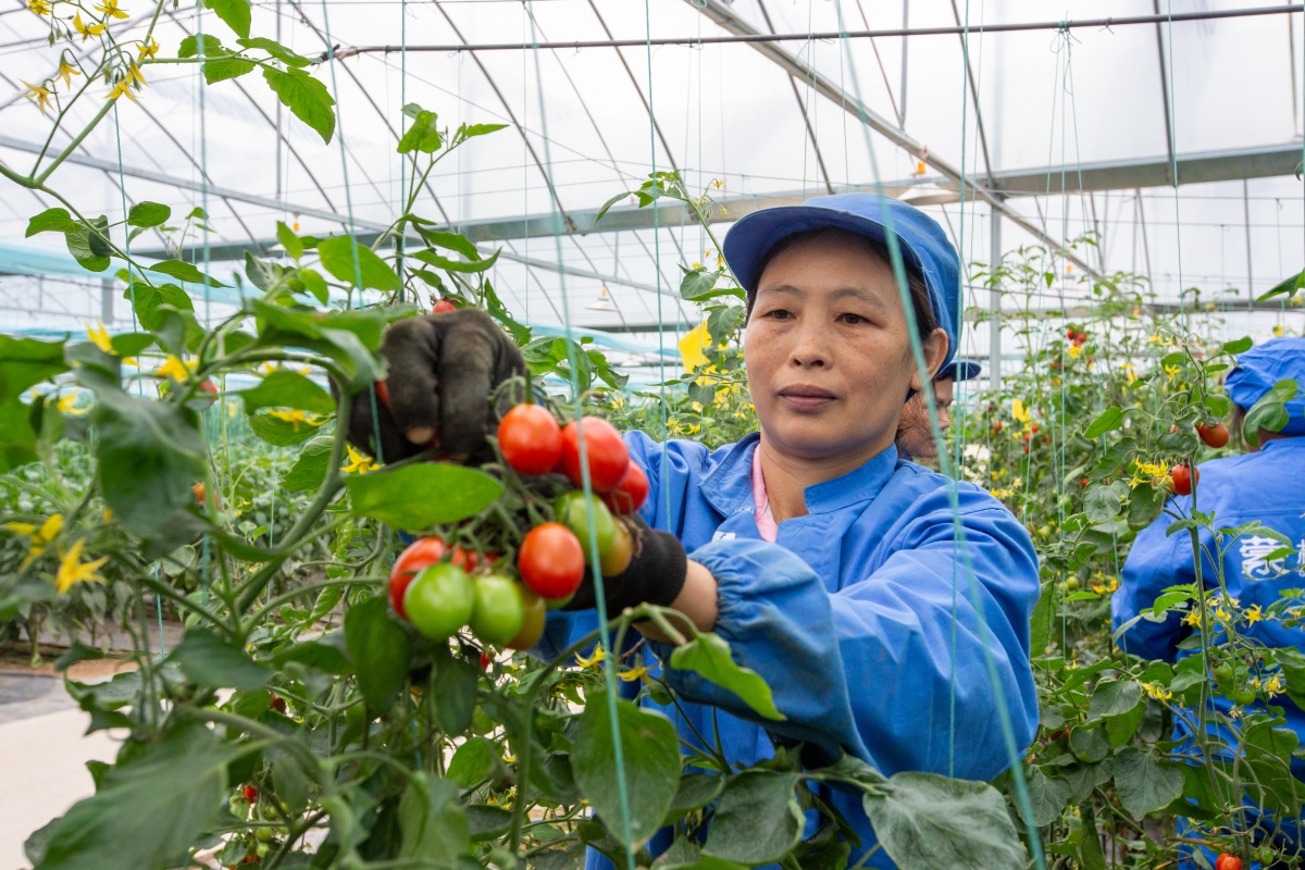 3月29日,在蒙山县蒙山镇文平村蒙山县村级集体经济蔬菜产业示范园内,工人正在采摘新品种西红柿。据了解,该示范园是蒙山县去年打造“党旗领航·桂蒙山耕”党建品牌,示范建设的千亩标准化现代化蔬菜生产基地,采取“村党组织+村集体经济+公司”的运营模式,建立起农户、村集体、公司互惠共赢的利益合作共同体,形成辐射力强的产业示范带,每年可为加盟村集体增收50万元以上,促进村集体经济健康可持续发展,实现巩固脱贫攻坚成果与乡村振兴有效衔接。通讯员 黄胜林 摄