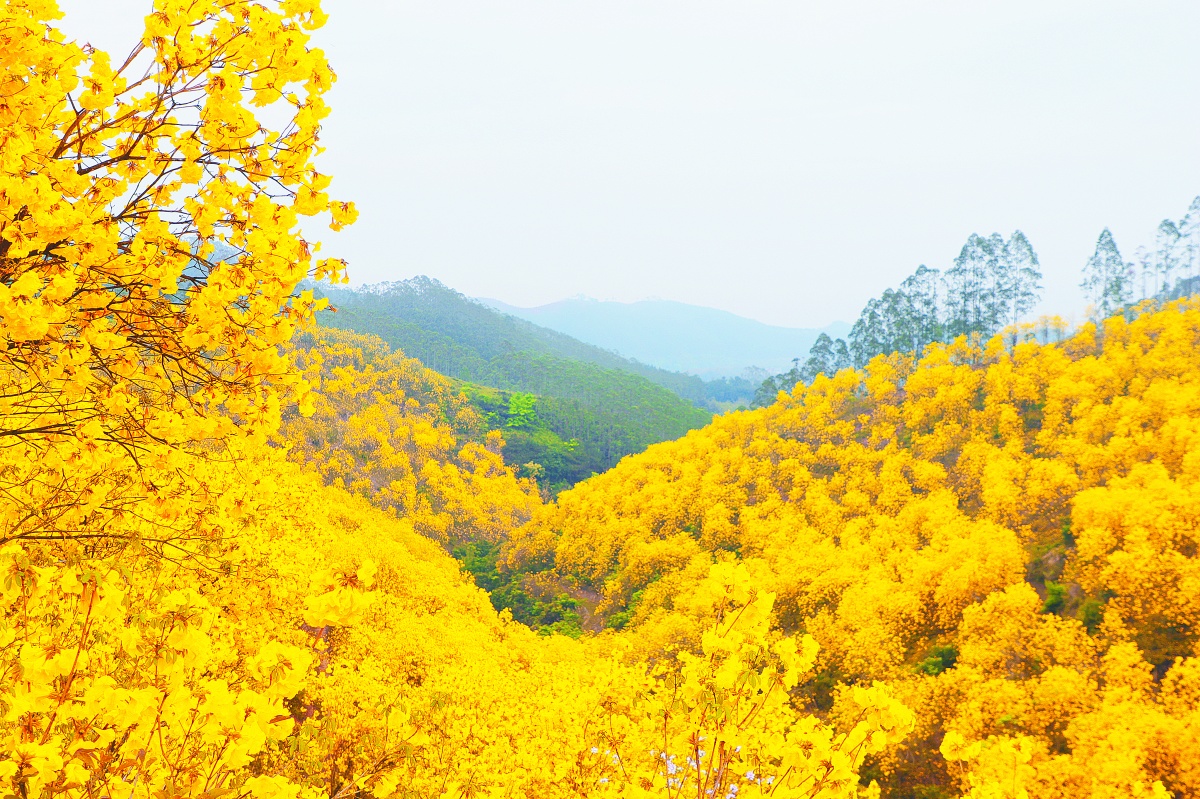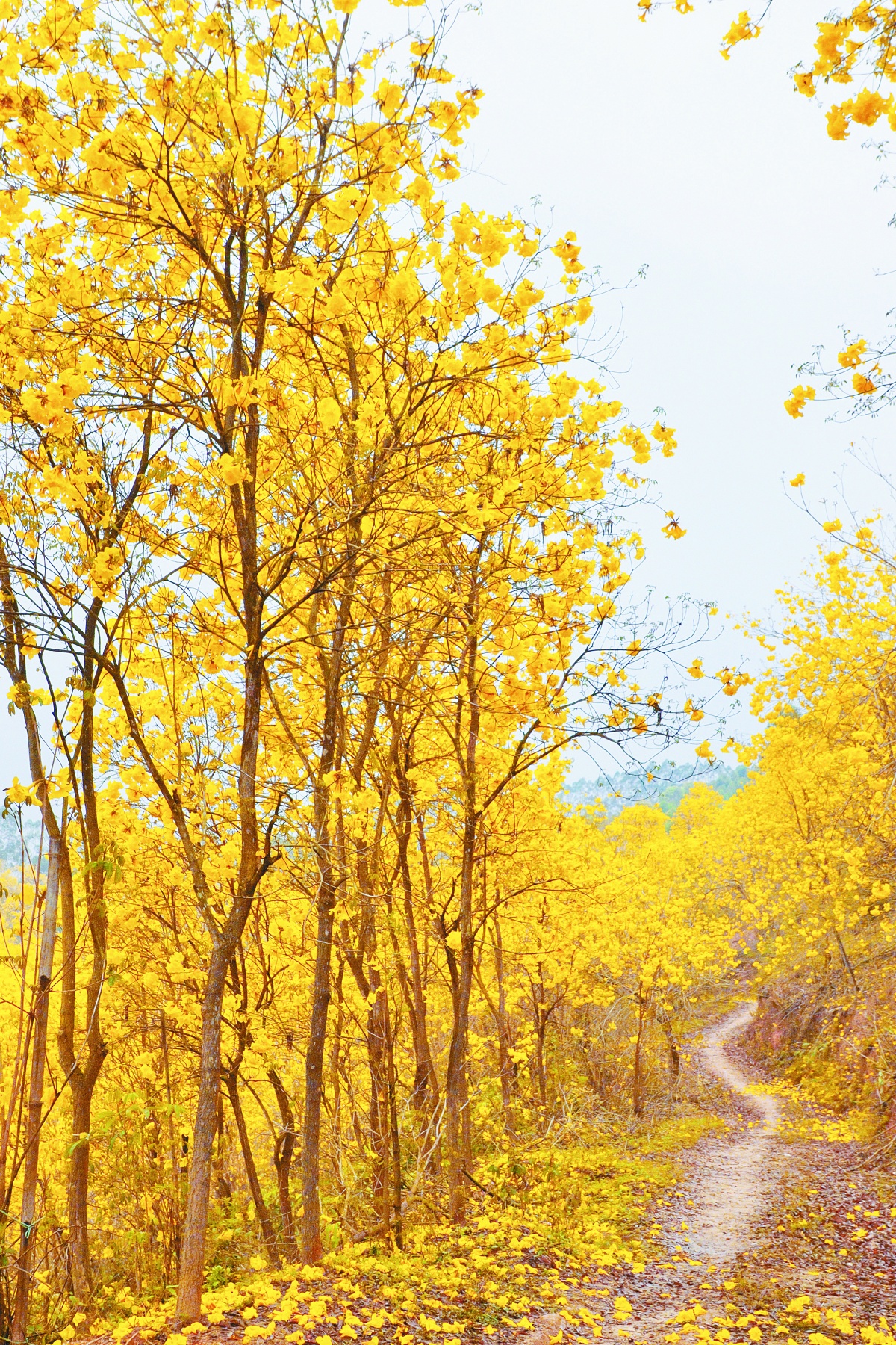 像和平镇都坡村留村组这么大面积的黄花风铃并不多,近几年来,每逢开春后不久,满山金黄总是美得让人心醉,成为广大网友竞相推荐的赏花踏春场所。