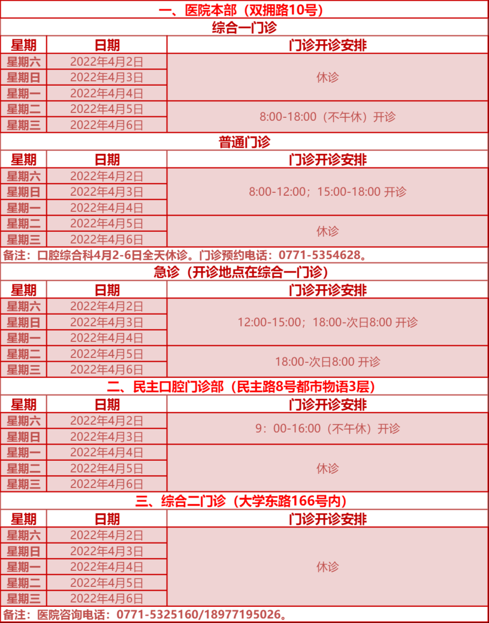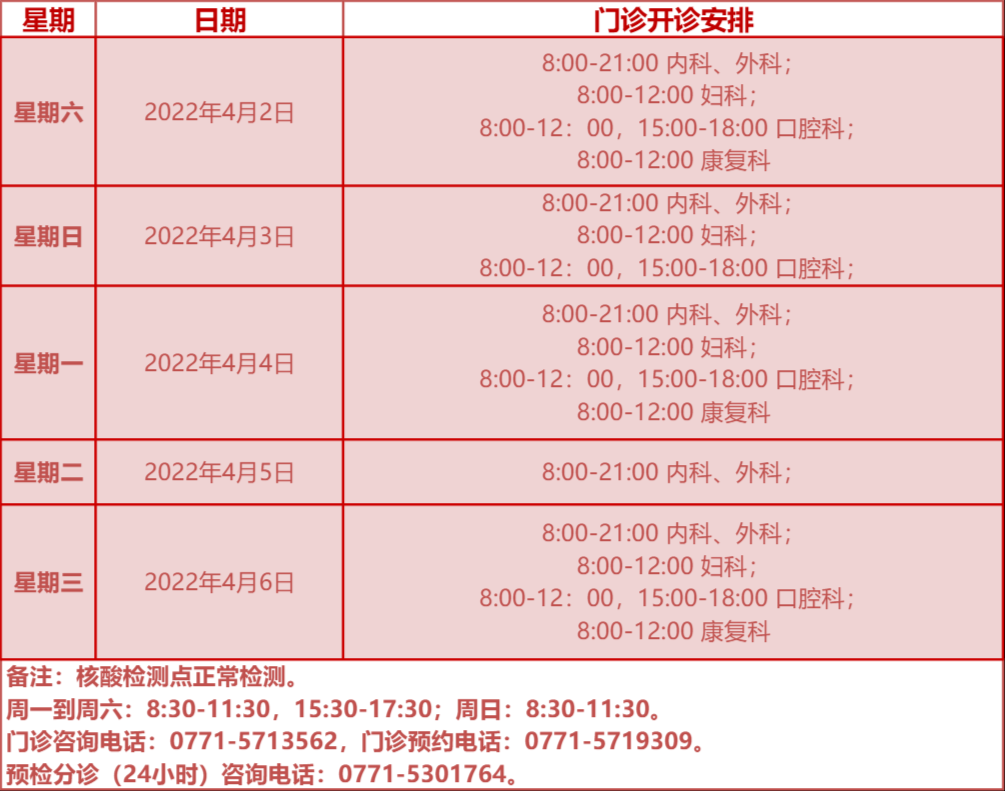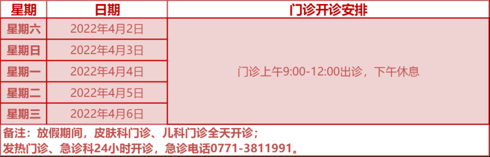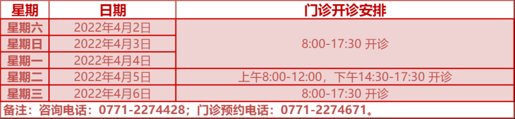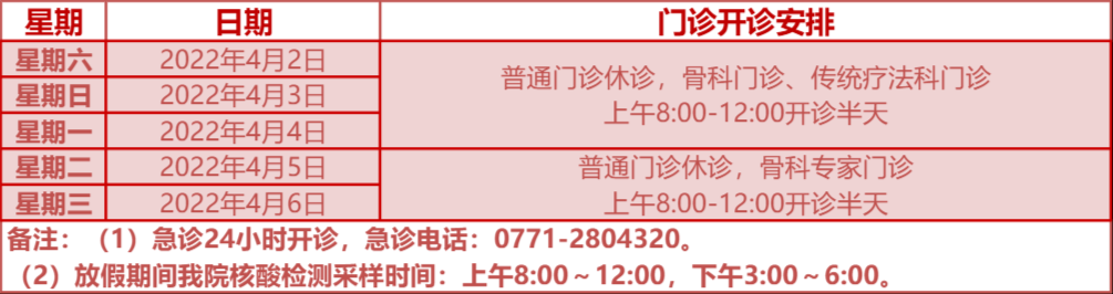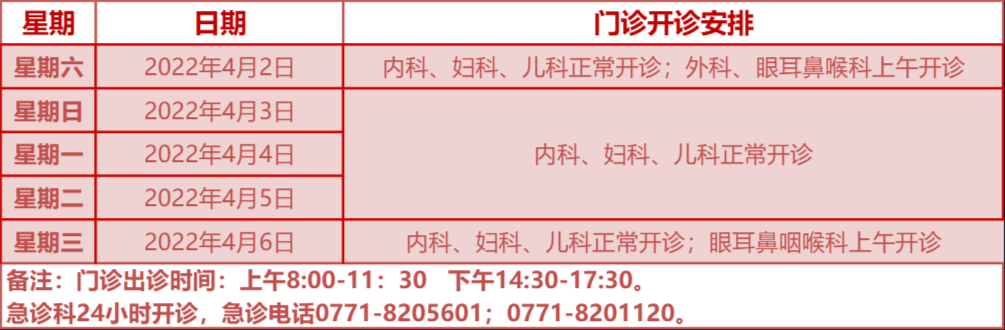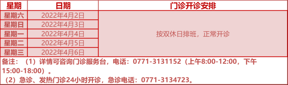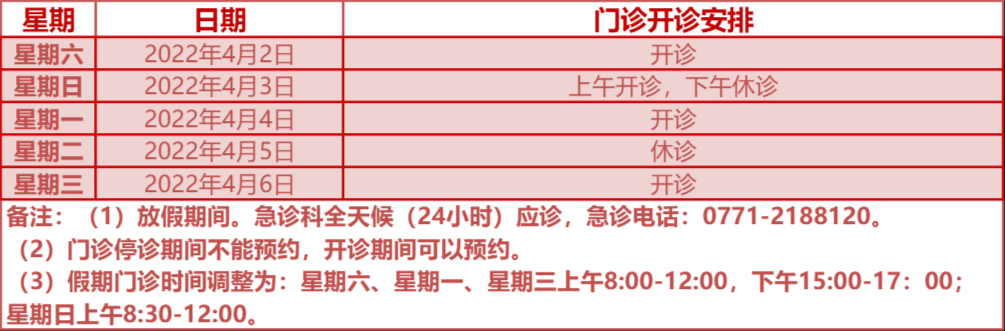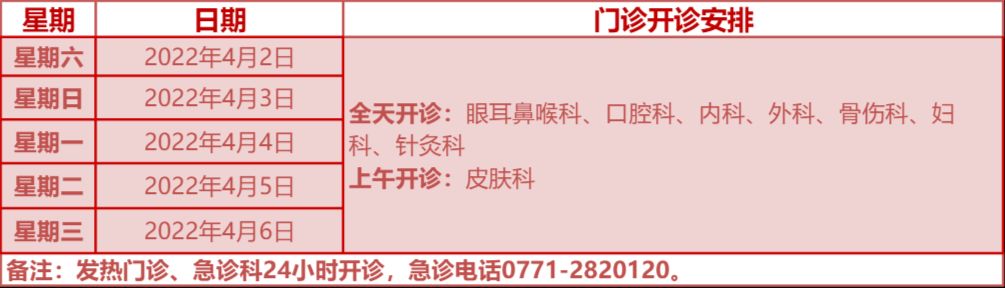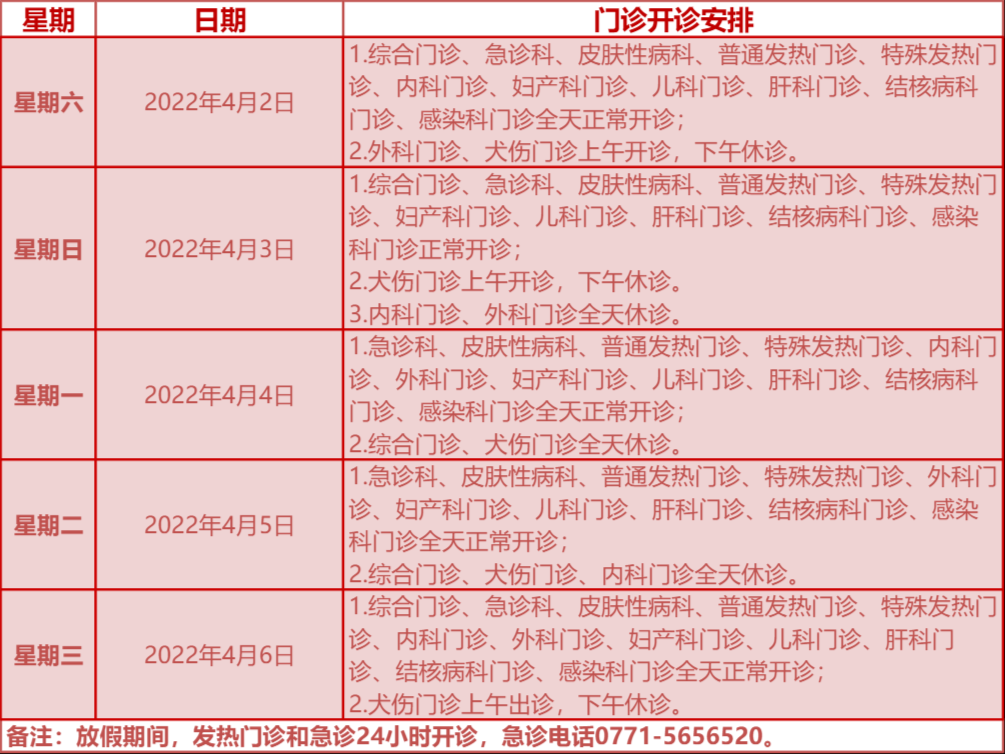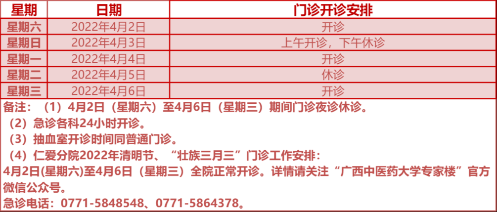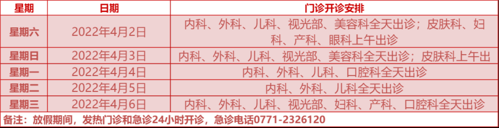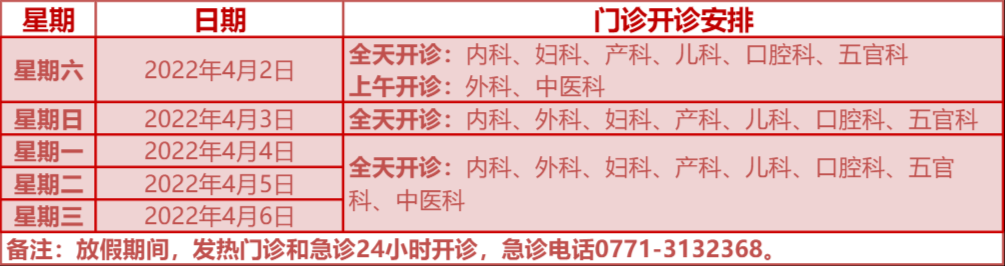 转扩 |假期广西各驻邕医院门诊工作安排看这里