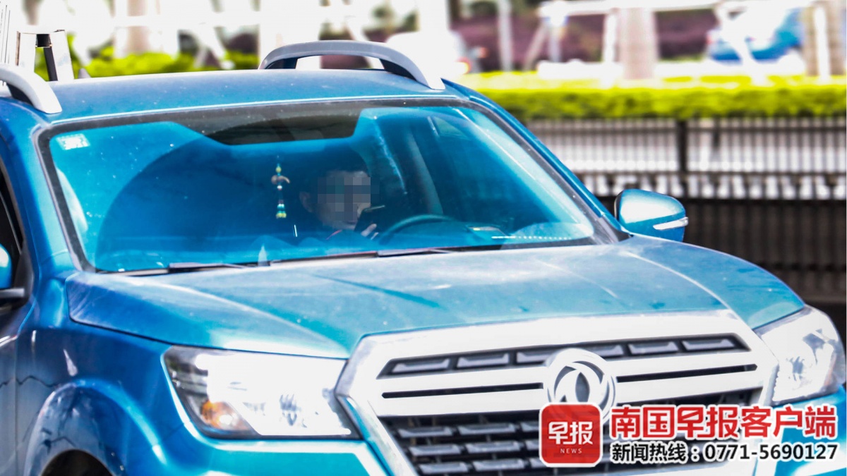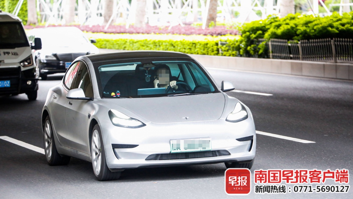 ▲民族大道上,一名司机持手机开车。