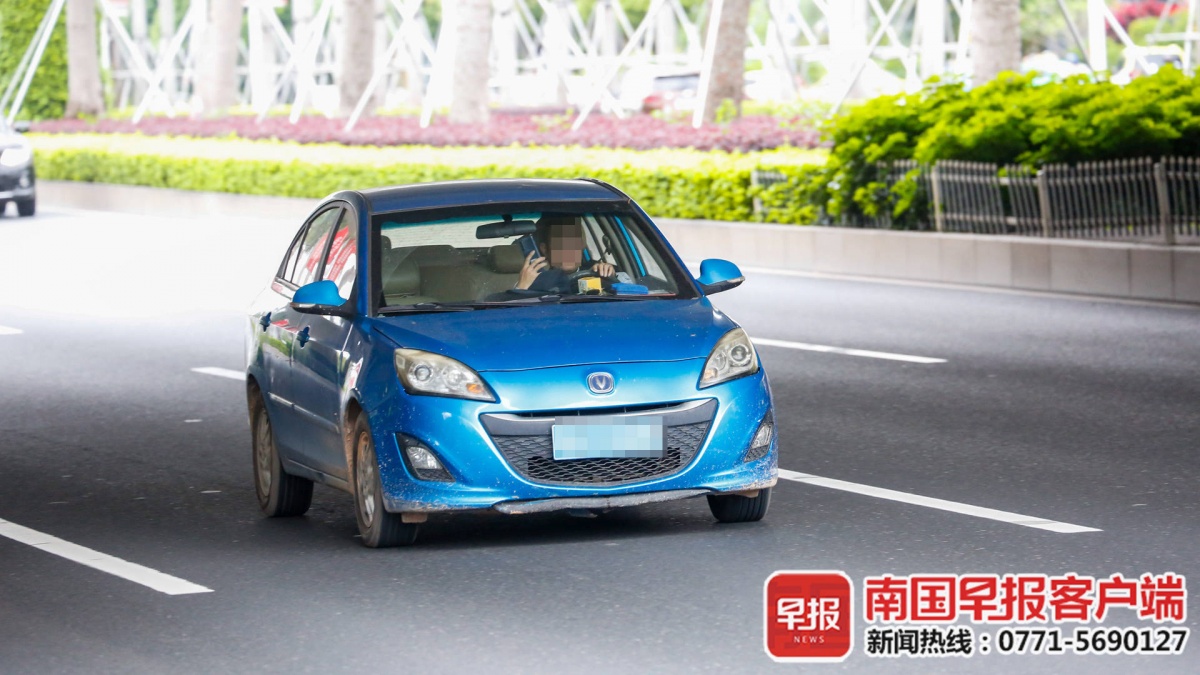 4月1日上午10时许,南宁市长湖路上,车来车往,一辆白色小车驶来,记者看到,车上男司机单手扶方向盘,另一只手拿着手机接听电话。由于司机分心驾驶,车速时快时慢,跟在后面的车辆也只能时快时慢,令人捏一把汗。