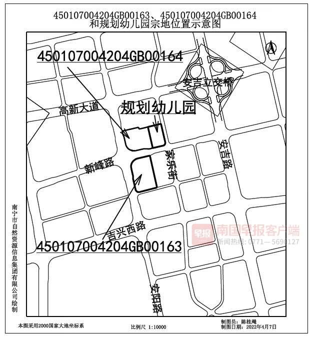 GC2022-020地块由450107004204GB00164宗地(以下简称“地块一”)与450107004204GB00163宗地(以下简称“地块二”)两个地块组成。地块一位于西乡塘区安阳路东侧、新峰路北侧,出让面积为25.864亩;地块二位于西乡塘区安阳路东侧、新峰路南侧,出让面积为32.298亩。地块一与地块二的土地用途均为城镇住宅、零售商业用地,两块地块的零售商业建筑面积占总计容建筑面积的比例均为3%~5%,其余为城镇住宅。此外,地块一东侧需配建18班幼儿园一处,用地面积约9192平方米,建筑面积不少于6480平方米。