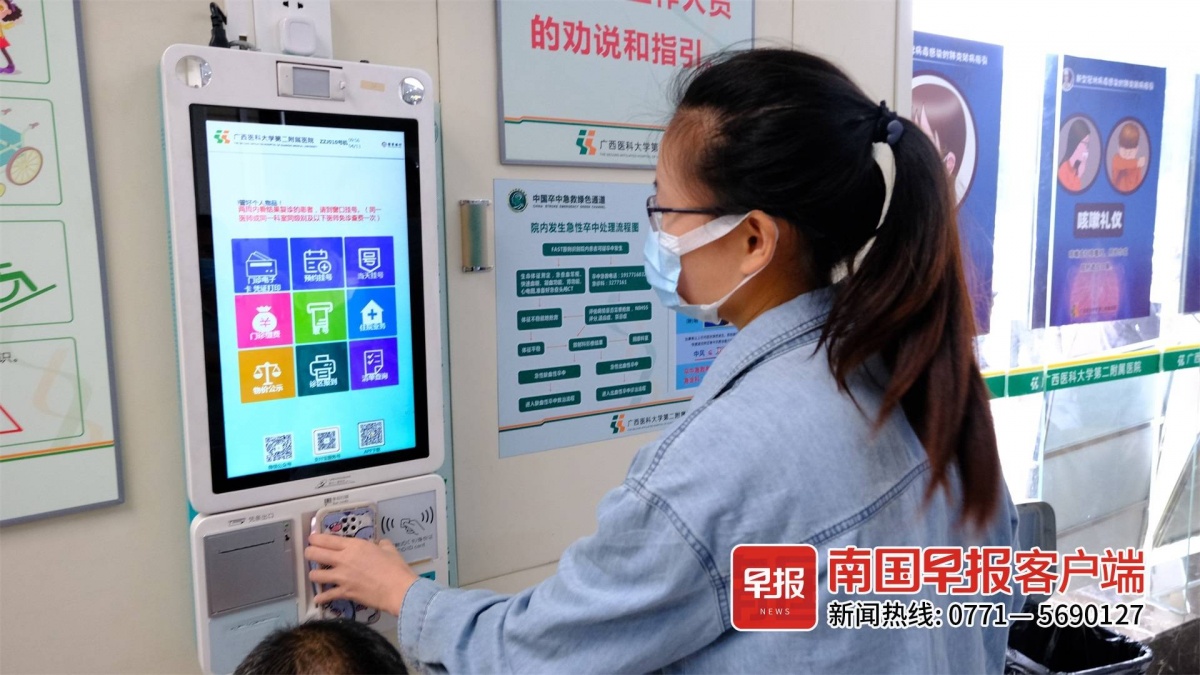 ▲小曾对医院的问诊流程已经十分熟悉,图为她在做代问诊服务,根据客户提供的挂号信息在医院自助机上签到。南国早报客户端见习记者 尹世斌 摄