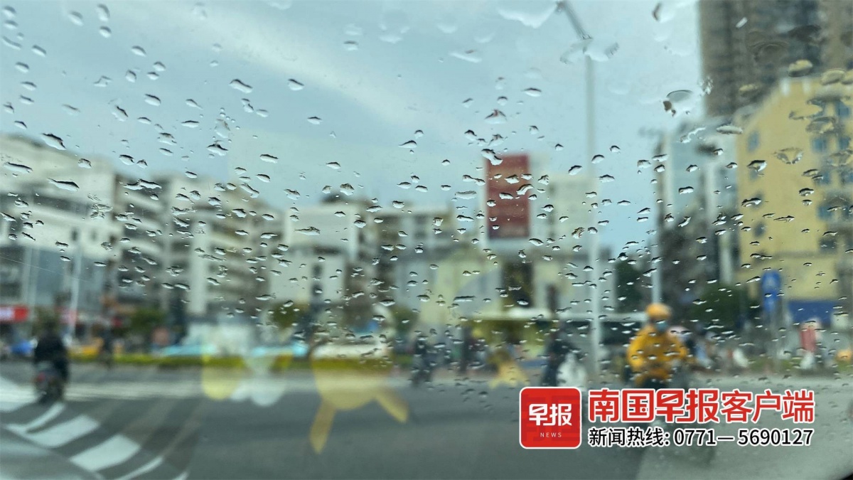 ▲4月19日中午,南宁大沙田地铁站一带下起零星小雨。