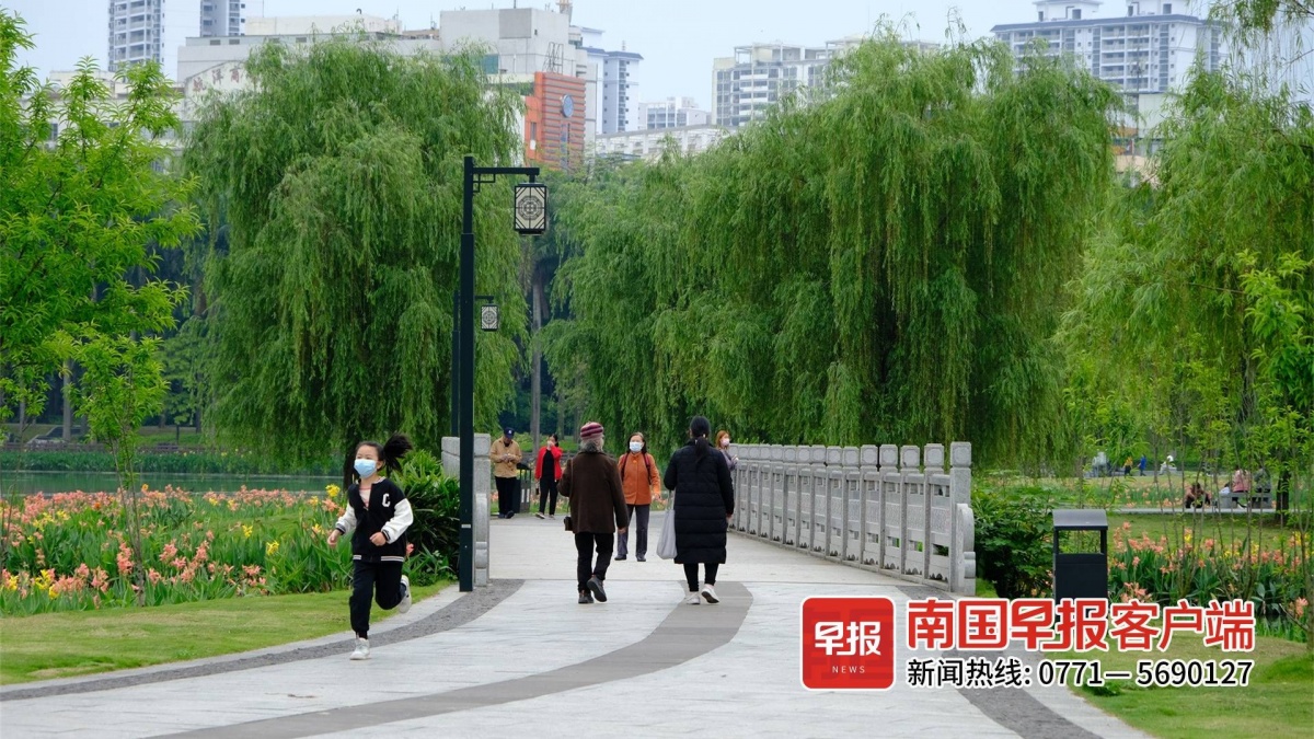 ▲4月19日,南宁天气回暖,市民在南湖公园游玩。