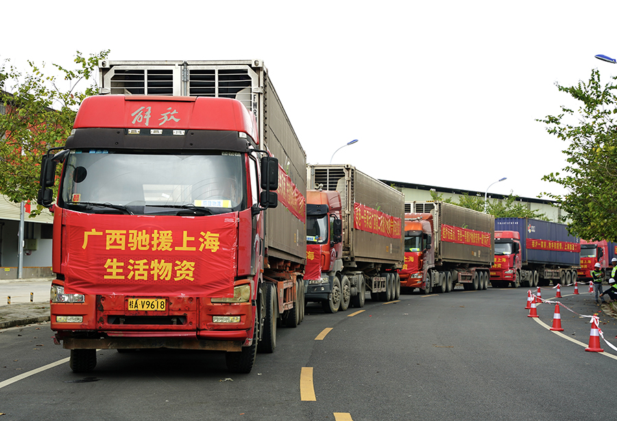 据悉,广西第二批驰援上海的生活物资运抵上海后,有关方面将会把此批物资分配至上海市徐汇区斜土街道办。