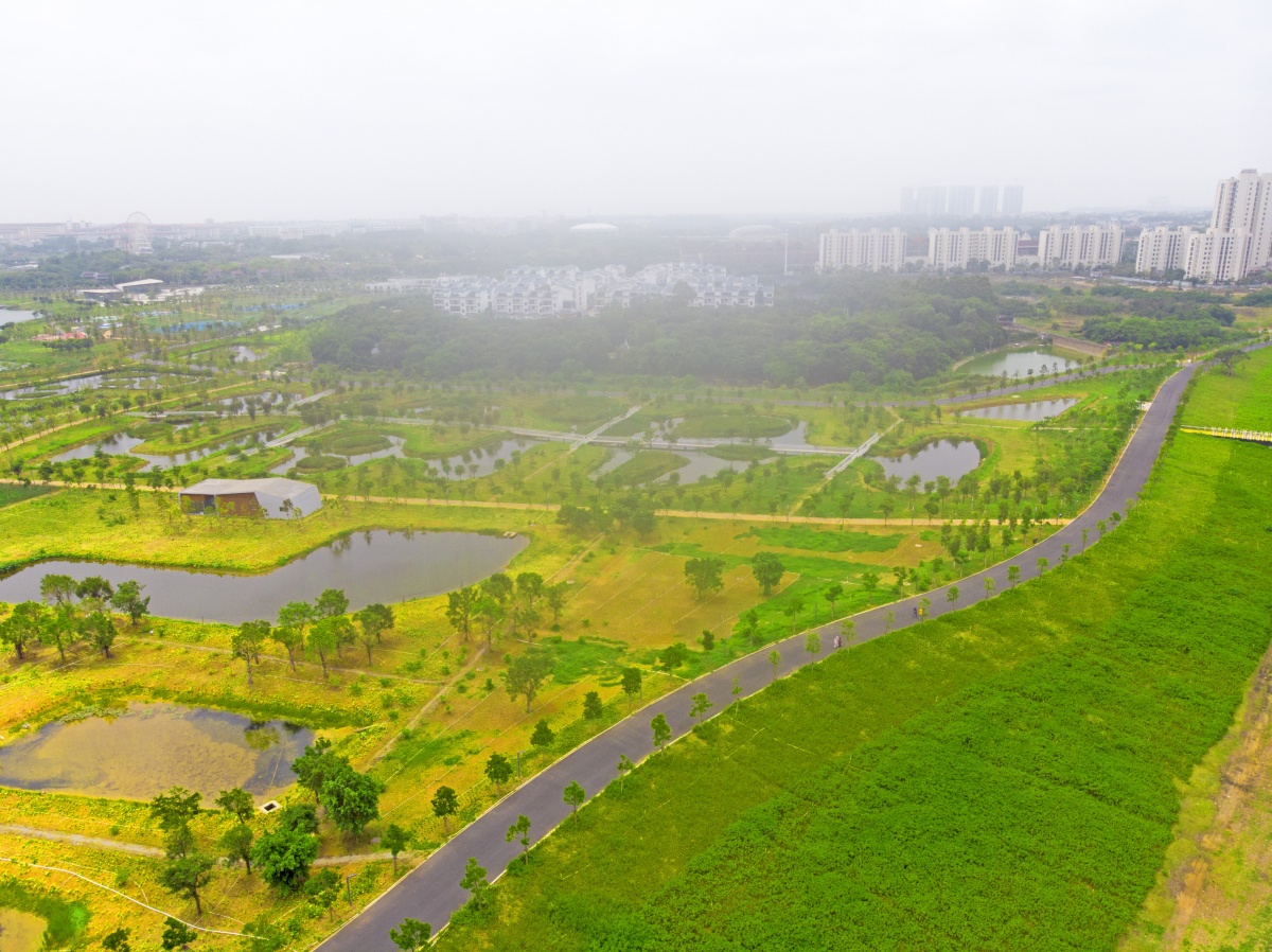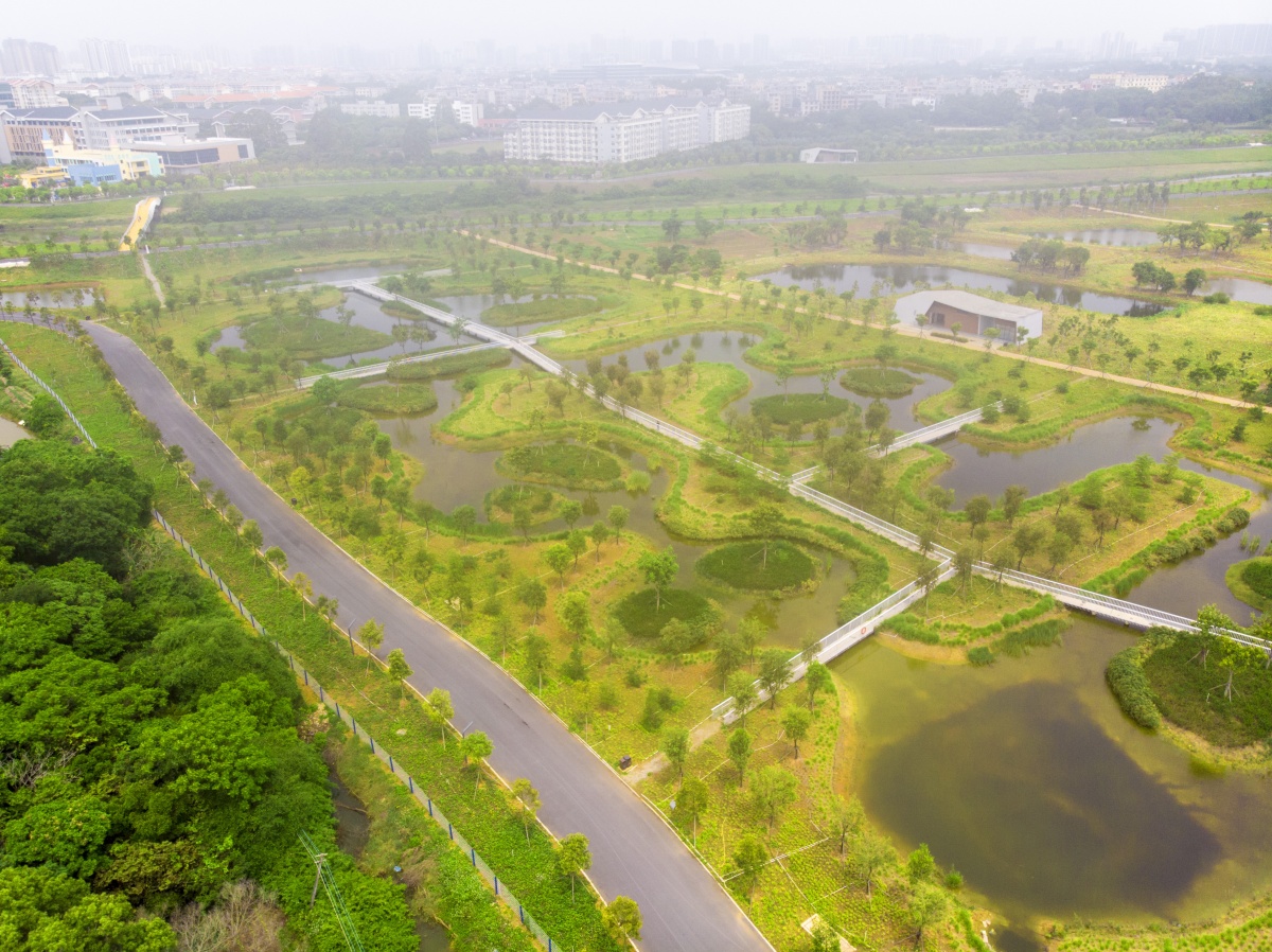 4月22日,北海滨海国家湿地公园冯家江流域生态环境修复中上游流域的绿地、水系等生态系统可对雨水进行吸纳、蓄渗和缓释,在春日暖湿气流笼罩下,处处可闻芳草气息。通讯员 李君光 摄