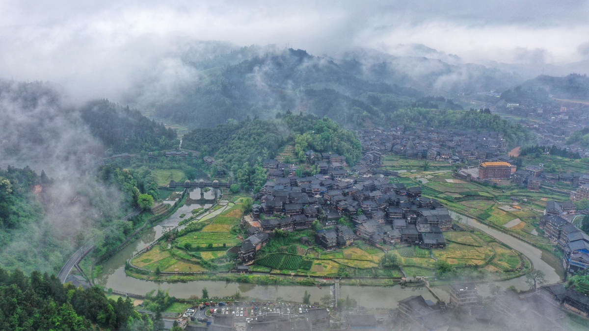 4月22日,三江侗族自治县林溪镇程阳八寨景区在缥缈云雾的映衬下,宛若仙境,美不胜收。通讯员 龚普康 韦丽婷 摄