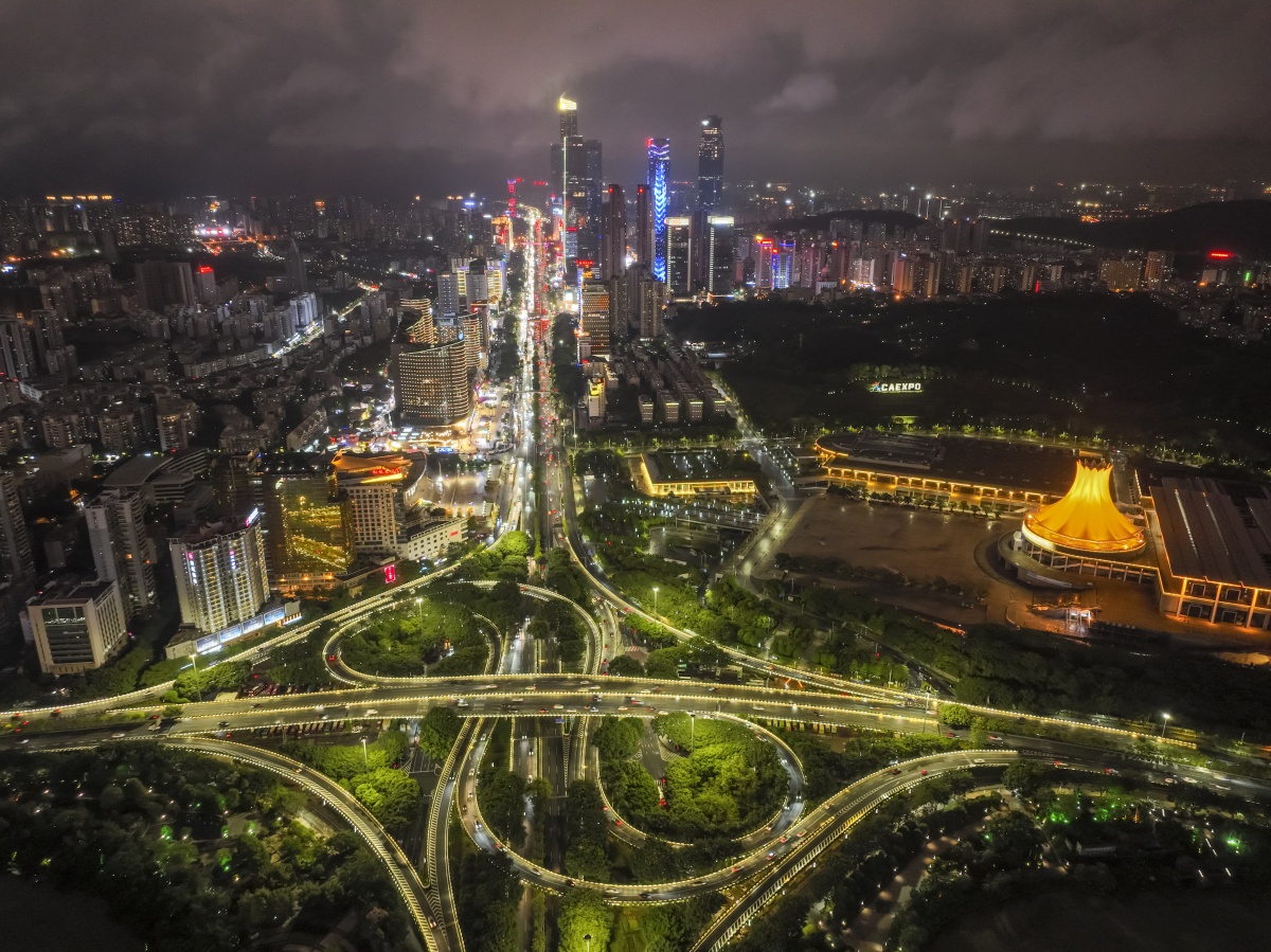 夜幕降临,华灯初上,南宁市各处灯光陆续亮起,整个城市变成灯的海洋、光的世界,城市夜景如梦如幻景美如画。通讯员 陈莲芬 摄